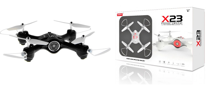 Полезной опцией этой модели является возможность управления через смартфон. Syma X23W подходит для полетов как дома, так и на улице. Присутствуют режимы автовзлета/автопосадки, Headless Mode. Встроенный барометр и HD камера никуда не делись.