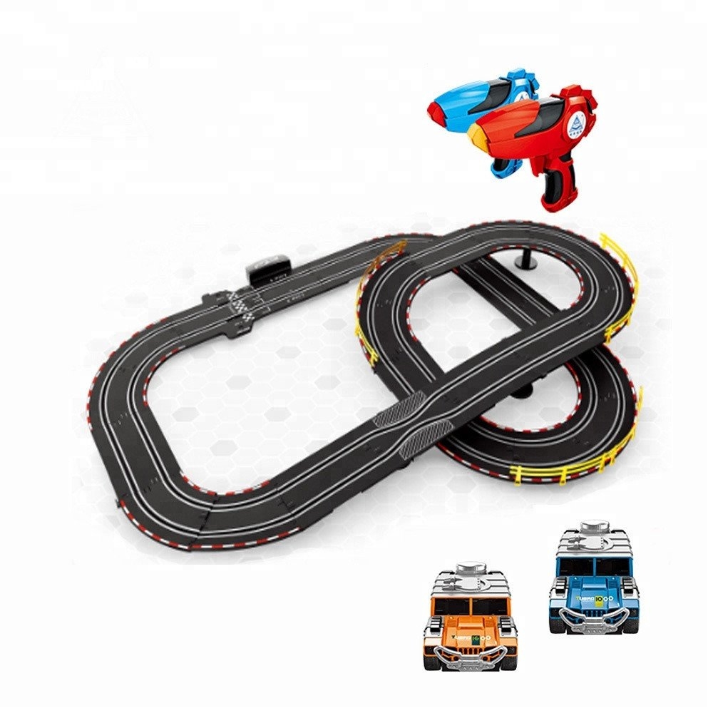 Особенность данной модели в том, что только вы задаете скорость движения машинки. На поворотах нужно притормаживать, чтобы не вылететь за пределы трассы. В общем, все как в настоящих гонках. Управление происходит с помощью беспроводного пульта. Самое главное, что играть и соревноваться на треке можно вдвоем.