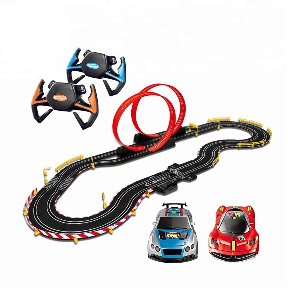 Прежде чем начать игру, ребенку предлагается из входящих в комплект деталей собрать трассу со сложной конфигурацией.Теперь играть стало еще веселее, а перегонки станут главной игрой для юных ребят. Особенность данной модели в том, что только вы задаете скорость движения машинки. Управление - в форме руля. Левая кнопка служит для управления скоростью машинки, правая для звукового сигнала. На поворотах нужно притормаживать, чтобы не вылететь за пределы трассы. Когда машинка приближается к петле - нужно максимально ускориться - чтобы успешно преодолеть этот участок трассы. В общем, все как в настоящих гонках. Самое главное, что играть и соревноваться можно вдвоем.