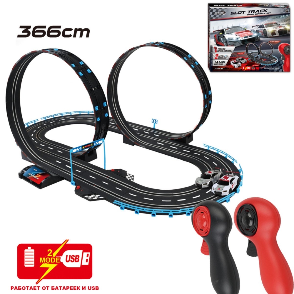 Гоночный автотрек JJ slot (2 машинки, 366 см, 1:43) - JJ206-1 - это превосходный подарок для мальчишек - любителей высокоскоростных соревнований. Игра способствует в развитии внимательности, быстроты реакции и точности движений.