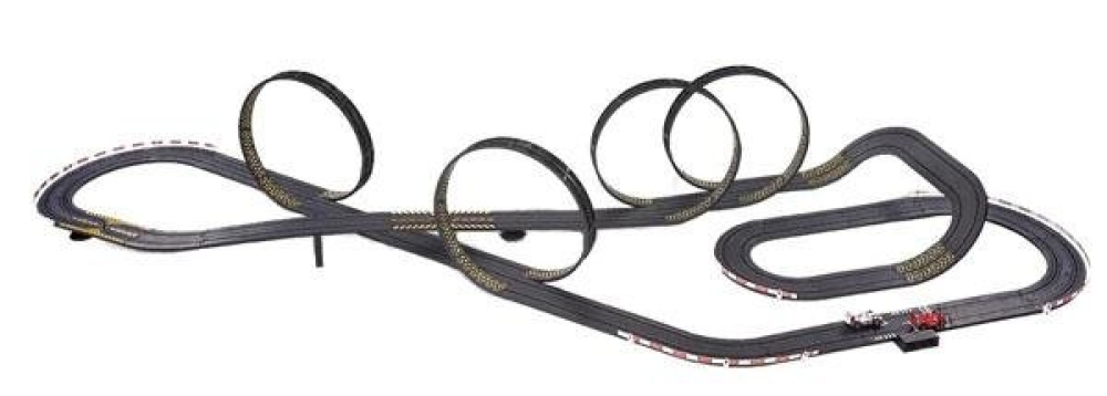 Гоночный автотрек для начинающих c большой протяженностью трассы в 1114 см. По треку ездят 2 гоночные машинки формула 1, управляемые пистолетным пультом. Управление полностью пропорциональное - т.е. чем сильнее нажатие на курок газа, тем быстрее едет машинка. Трасса имеет несколько уровней и пересечений трасс. Всего на маршруте 4 мертвых петли! Для их прохождения требуется нажать на газ. Автотрек подойдет для детей от 3-х лет. Поможет развить у ребенка внимательность, точность и реакцию. Трассу легко собрать и начать играть уже через полчаса, детали соединяются друг с другом одним щелчком. Отлично подойдет для детей и их родителей.