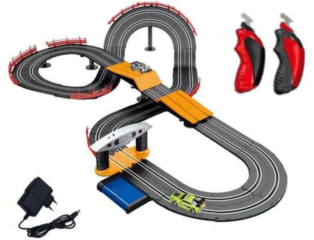 Автотрек для детей c протяженностью трассы в 540см. По треку ездят 2 гоночные машинки, управляемые пультом (2 шт в комплекте). Трек работает как от батареек, так и от сети. Управление полностью пропорциональное - т.е. чем сильнее нажатие на курок газа, тем быстрее едет машинка. На трассе вы встретите трамплин, перепады высот, несколько крутых виражей, а также цифровое табло со звуком, на котором отображается количество кругов. Автотрек подойдет для детей от 3-х лет. Поможет развить у ребенка внимательность, точность и реакцию. Трассу легко собрать и начать играть уже через полчаса, детали соединяются друг с другом одним щелчком. Отлично подойдет для детей и их родителей.