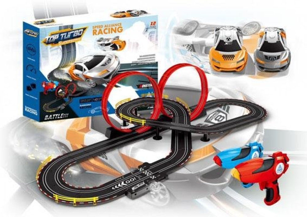 Автотрек для детей c протяженностью трассы в 740. По треку ездят 2 гоночные машинки, управляемые пультом (2 шт в комплекте). Трек работает как от батареек, так и от сети. Управление полностью пропорциональное - т.е. чем сильнее нажатие на курок газа, тем быстрее едет машинка. На трассе вы встретите несколько мертвых петель, перепады высот, а также крутые виражи с отбойниками. Автотрек подойдет для детей от 3-х лет. Поможет развить у ребенка внимательность, точность и реакцию. Трассу легко собрать и начать играть уже через полчаса, детали соединяются друг с другом одним щелчком. Отлично подойдет для детей и их родителей.