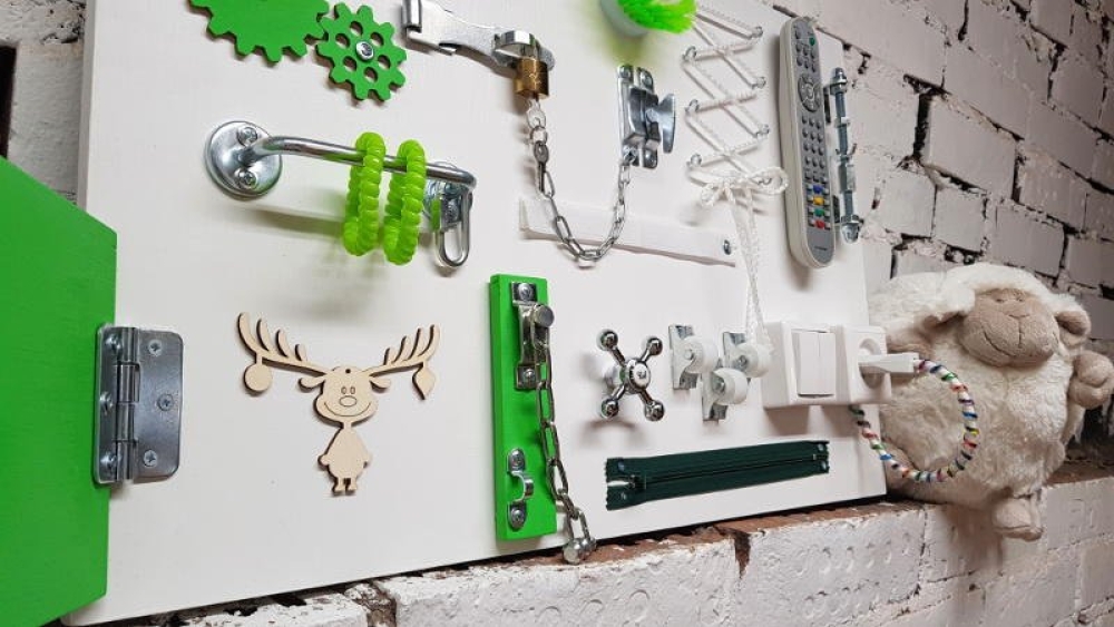 Такой подарок как бизиборд порадует как девочек, так и мальчиков в возрате от полугода до 5 лет. Игровые элементы доски обеспечивают всесторонее развитие ребенка и направлены на тренировку и развитие таких способностей как логика, память, мелкая моторика, воображение, ловкость, концентрация и многих других, а так же уберегает ребенка от травмоопасных ситуаций в период познания окружающего мира.