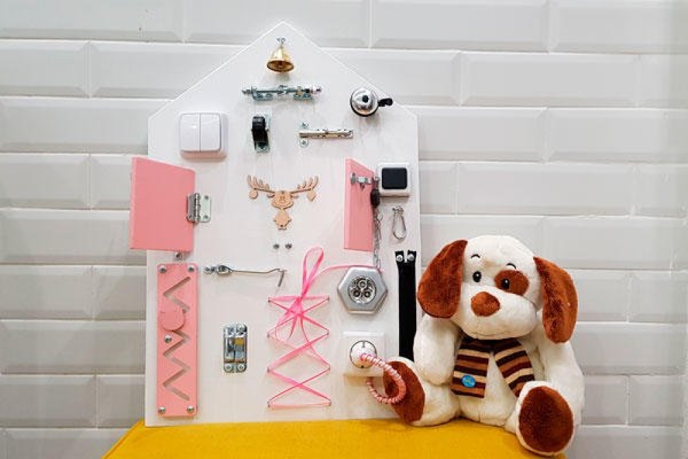 Бизиборд Планшет Домик Большой Розовый (60*40 см)