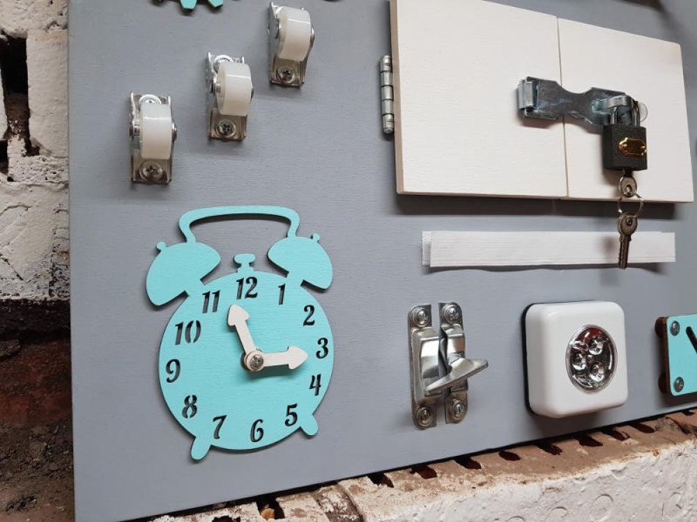 Такой подарок как бизиборд порадует как девочек, так и мальчиков в возрате от полугода до 5 лет. Игровые элементы доски обеспечивают всесторонее развитие ребенка и направлены на тренировку и развитие таких способностей как логика, память, мелкая моторика, воображение, ловкость, концентрация и многих других, а так же уберегает ребенка от травмоопасных ситуаций в период познания окружающего мира.