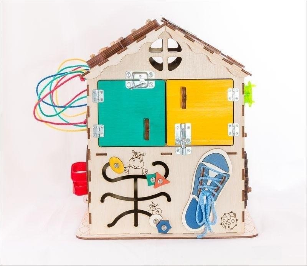 Бизиборд-дом - это целый игровой комплекс, состоящий из 6 различных бизибордов-планшетов!