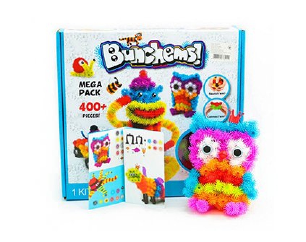 Конструктор-липучка Bunchems Mega Pack – набор из более чем 400 ярких деталей для создания самых невероятных и эффектных форм без ограничения фантазии ребенка. Конструктор состоит из мягких разноцветных шариков, которые легко цепляются друг за друга, образуя разнообразные фигурки. Шарики приятные на ощупь, не царапаются и отлично держат заданную форму. Помимо шариков 8 разных цветов в набор входят 36 дополнительных элементов – глаза, ножки, крылья, даже усы и шляпы! Фантастические животные, инопланетная техника, роботы, мультяшные герои – с Bunchems Mega Pack ребенок сможет слепить что угодно! Увлекательный процесс конструирования не только подарит детям много часов веселых игр, но и поможет развить мелкую моторику, внимательность и усидчивость, воображение, фантазию и образное мышление. Готовая фигурка так же быстро и легко разбирается, чтобы уже через мгновение малыш вновь окунулся в творчество, воплощая новую идею. Детали конструктора изготовлены из гипоаллергенной мягкой пластмассы и абсолютно безопасны для детей. Однако стоит остерегаться попадания шариков в волосы.