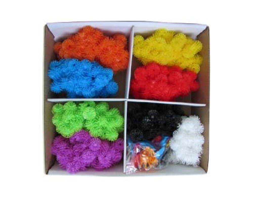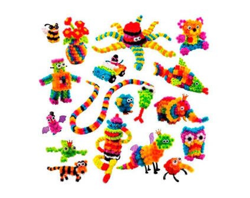Конструктор-липучка Bunchems – уникальная развивающая игрушка, отличный и полезный подарок для детей от 4 лет. Конструктор состоит из мягких разноцветных шариков с крючками, напоминающих репейник, которые легко и прочно цепляются друг за друга. Лепить из Bunchems так же просто, как и из пластилина, но гораздо удобнее и гигиеничнее. При этом завершенная фигурка сохраняет подвижность. Сами шарики очень приятные на ощупь, не царапаются и отлично держат заданную форму. Также в набор входят дополнительные элементы – забавные глаза, ножки, крылья, даже очки и шляпы для создания самых разных героев. С большим набором Bunchems из 600+ деталей ребенок сможет слепить что угодно: начать можно с показанных в инструкции примеров, а затем дать волю воображению! Увлекательный процесс конструирования из разноцветных шариков не только подарит детям множество ярких эмоций, но также поможет развить мелкую моторику, внимательность и усидчивость, воображение, фантазию и образное мышление. Готовая фигурка так же быстро и легко разбирается, чтобы малыш тут же смог вновь окунуться в творчество, воплощая новую идею. Детали конструктора изготовлены из гипоаллергенной мягкой пластмассы, не пачкаются и не имеют запаха, при необходимости легко моются. Bunchems абсолютно безопасен для детей, однако стоит остерегаться попадания шариков в волосы.