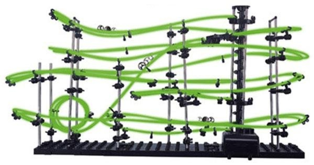 3-й уровень уже подойдет не только новичкам, но и взрослым. Удовольствие доставит сборка конструктора и итоговый результат. Вы получите занимательные горки, по которым катается металлический шарик, вверх и вниз, делая мертвую петлю. Наверх шарик поднимается с помощью электронного лифта. Они катаются по инерции используя потенциальную и кинетическую энергию.