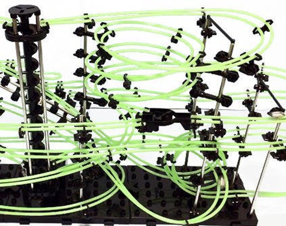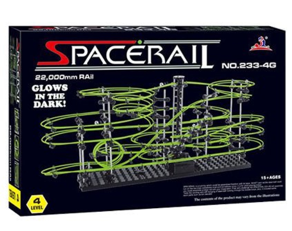 Динамический конструктор Космические горки «SpaceRail» (средний уровень сложности), новая серия, светящиеся рельсы, уровень 4 - 233-4G. SpaceRail Level 4 – это космическая трасса, представляющая собой отличную пространственную головоломку, которая увлечет всю семью от мала до велика! Процесс сборки доставит удовольствие и детям, и родителям, а запуск космической трассы приведет всех в восторг. Вы сможете построить захватывающие дороги и сами задать траектории, по которым стремительно будут проноситься металлические шарики. Это интереснейший аттракцион, напоминающий «американские горки», за которым можно наблюдать часами. Сборка конструктора поможет ребенку развить пространственное мышление и фантазию. Собранная модель станет изюминкой вашего дома и привлечет внимание окружающих. Вы и ваш ребенок сможете гордиться тем, что самостоятельно собрали такой аттракцион. Длина трассы: 22 м. ОСТОРОЖНО!! Не позволяйте детям до 3-х лет играть с конструктором, так как в его составе имеются мелкие детали, которые они могут проглотить!!