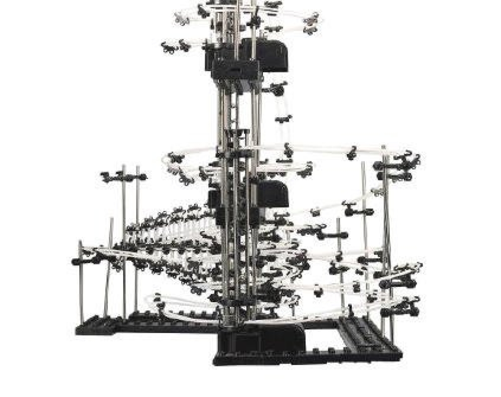 Динамический конструктор «Космические рельсы SpaceRail Level 8» - сложная пространственная головоломка, способная надолго занять детей и родителей. Монтаж деталей в полноценный лабиринт может занять до нескольких часов, благодаря чему головоломка поможет развить терпение, усидчивость и целеустремленность, а главное – фантазию и пространственное мышление. Помимо самой сборки некоторое время уйдет и на отладку готового лабиринта в местах сопряжений рельс, а также подгонку других деталей для беспрепятственного движения шаров. Зато результат потраченных сил и времени приведет в восторг каждого - за запуском шаров по собранному лабиринту можно наблюдать бесконечно. Набор имеет высокий уровень сложности – 8, собирается как по прилагающейся схематичной инструкции, так и есть возможность самому придумывать необыкновенные конструкции, ограничиваясь лишь собственной фантазией и количеством деталей. В набор входит 40 м рельс и 10 шаров, дополнительно можно взять другие наборы SpaceRail, они все совместимы между собой.