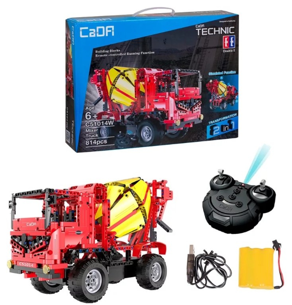Данная модель радиоуправляемого конструктор Cada Technic серии C51014W – это конструктор на радиоуправлении два в одном бетономешалка/кран. Играя с этим автомобилем, ребенок почувствует себя не только водителем, но и инженером, собирающим модель бетономешалки. Собирая его, он сможет понять как все устроено изнутри, что приводит в движение машинку, что поворачивает колеса. В набор входят элементы для сборки радиоуправляемого грузовика и пульт управления 2.4Ghz, в том числе электронный блок управления (12В - не опасен для детей), коллекторный мотор. Управляемая пультом, машинка движется вперед, назад, влево и право. Ваш ребенок будет в восторге от такого подарка! Сборка занимает примерно 2.5 - 3 часа, набор конструктора включает в себя 814 деталей.