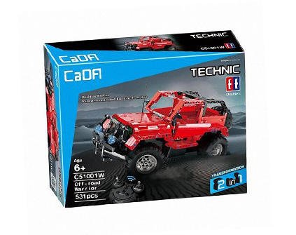 Модульный джип на радиоуправлении, собираемый из 531 детали, с открывающимися дверьми и резиновыми колесами.