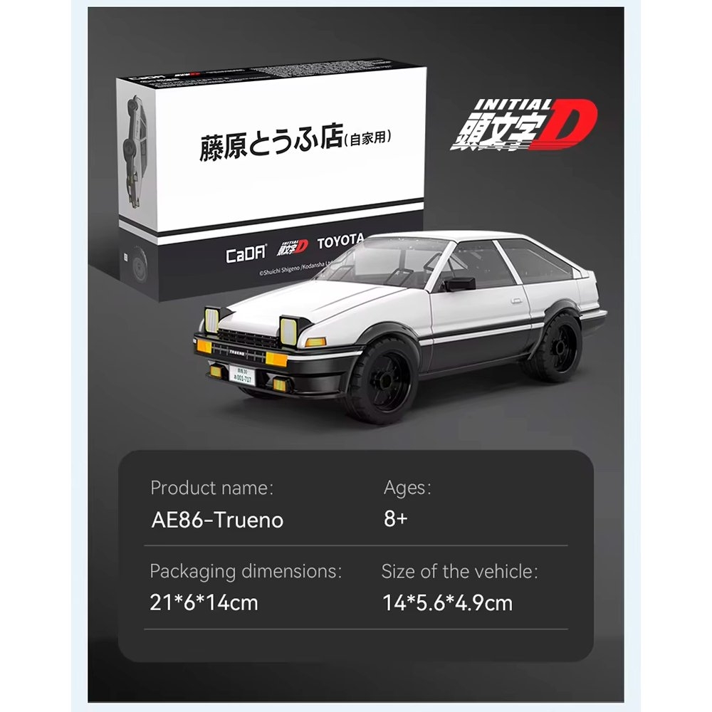 - Конструктор от CADA представляет собой набор для постройки автомобиля Toyota AE86 Trueno из 72 деталей в масштабе 1/35. Автомобиль обладает высокой степенью детализации и стильным дизайном.