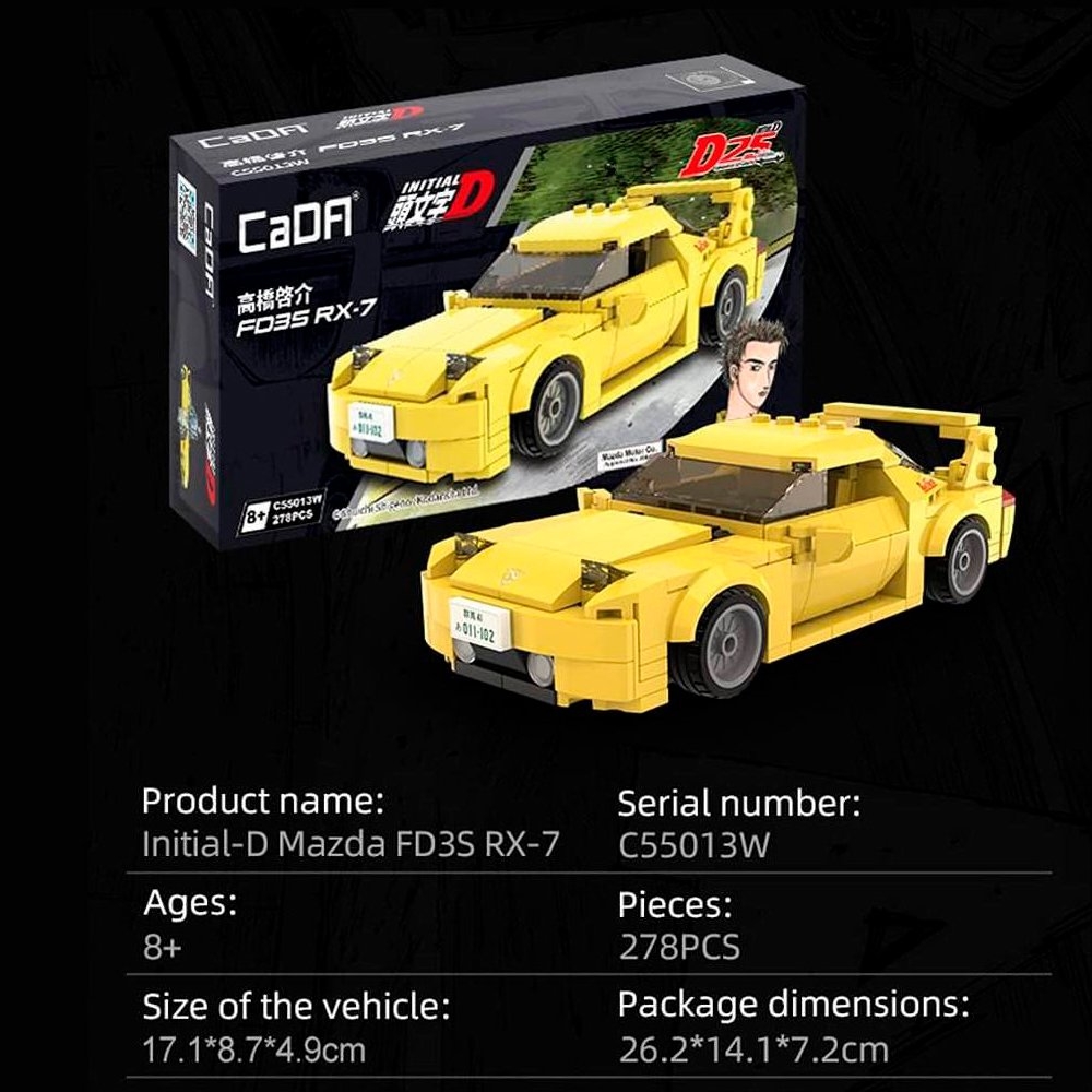 - Конструктор от CADA представляет собой набор для постройки автомобиля Mazda FC35 RX-7 из 278 деталей в масштабе 1/24. Является частью серии CaDa Initial-D, посвященной знаменитой манге Initial-D. В манге это автомобиль Киоко Ивасе. Открываются капот и багажник.