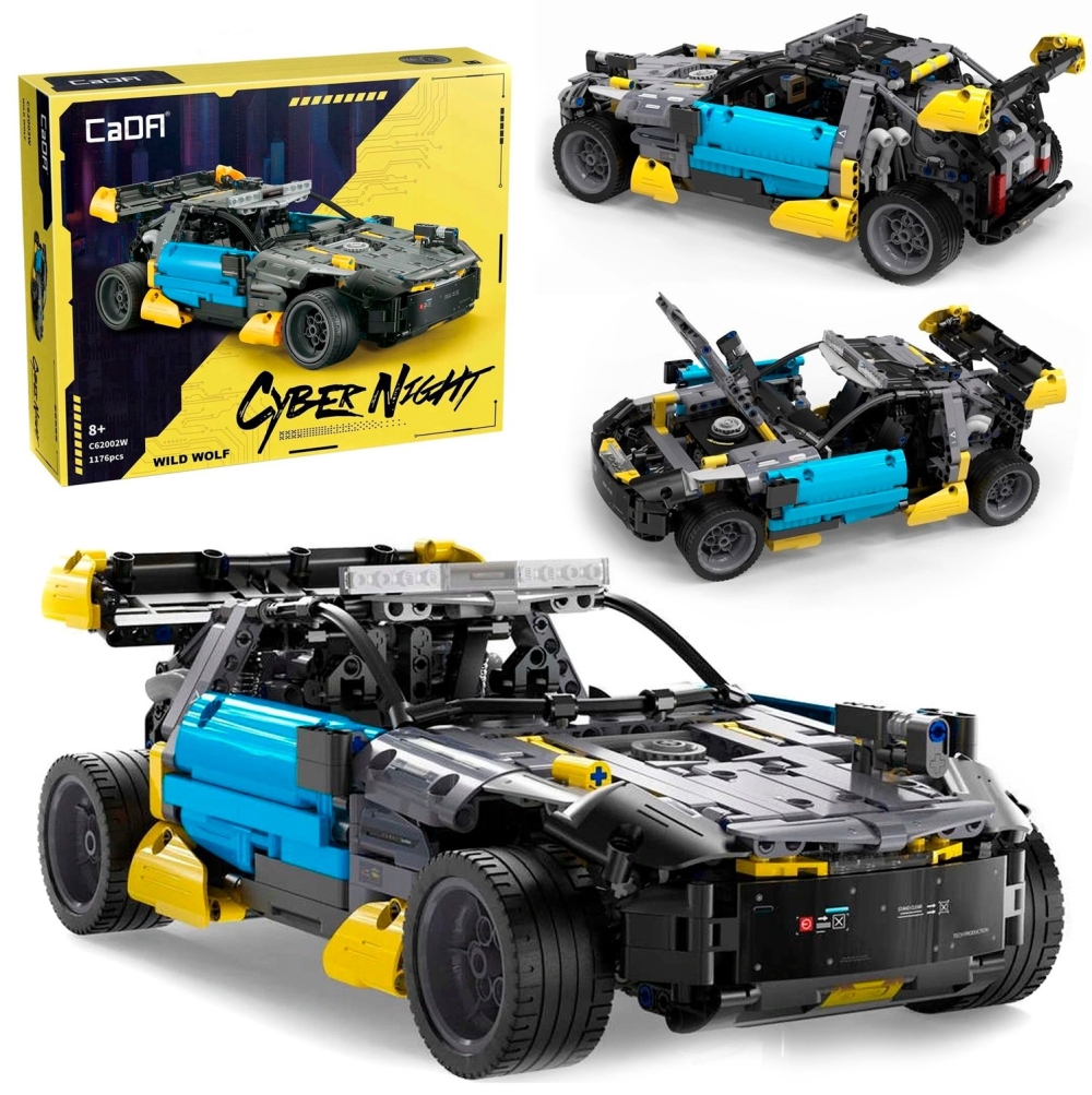 CaDa - это бренд производителя игрушек Double Eagle Group. В наборе C62002W предоставляется 1176 деталей для сборки стильного багги Дикий волк. Масштаб модели - 1:12. Цвета багги - черный, жёлтый и ярко-синий. Машина отлично детализирована, ее внешний вид и внутренний интерьер проработаны. Особенностью автомобиля является необычный способ открывания его дверей - их нужно сдвигать вперед. Модель можно превратить в радиоуправляемую, если установить комплект электроники. Колеса модели оснащены рулевым управлением и подвеской.