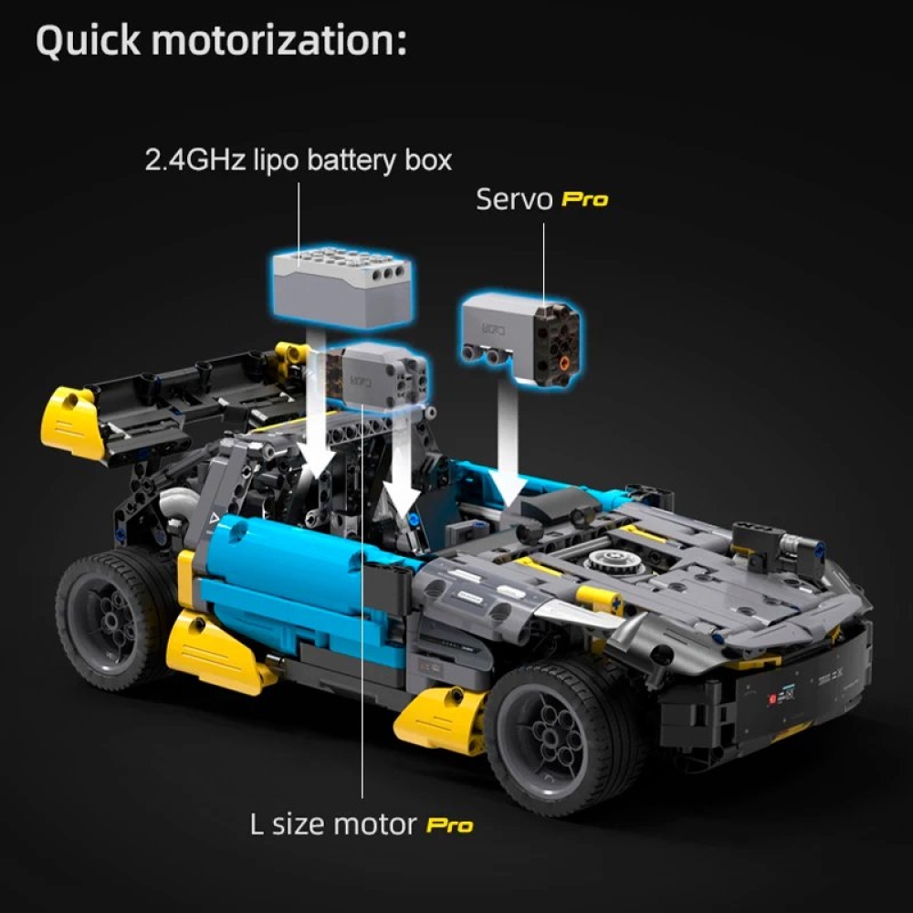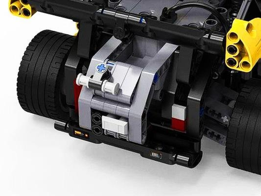 Модель не только является игровым конструктором, но при установке электропривода и аккумуляторного блока отлично работает в качестве радиоуправляемой. Стильный внешний вид позволит машинке занять достойное место в коллекции.