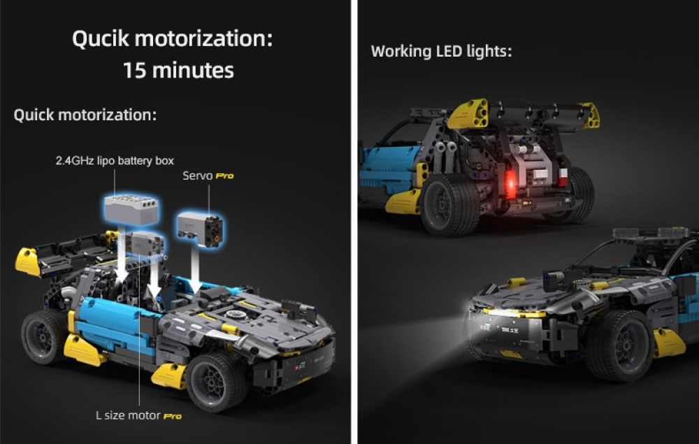 В некоторых моделях зданий и техники предусмотрена подсветка и, в случае машин и техники - возможность установить электропривод и аккумулятор, превратив модель в радиоуправляемую. CaDa не уступает Lego по техническим возможностям и качеству, при этом являясь отличным совместимым дополнением.