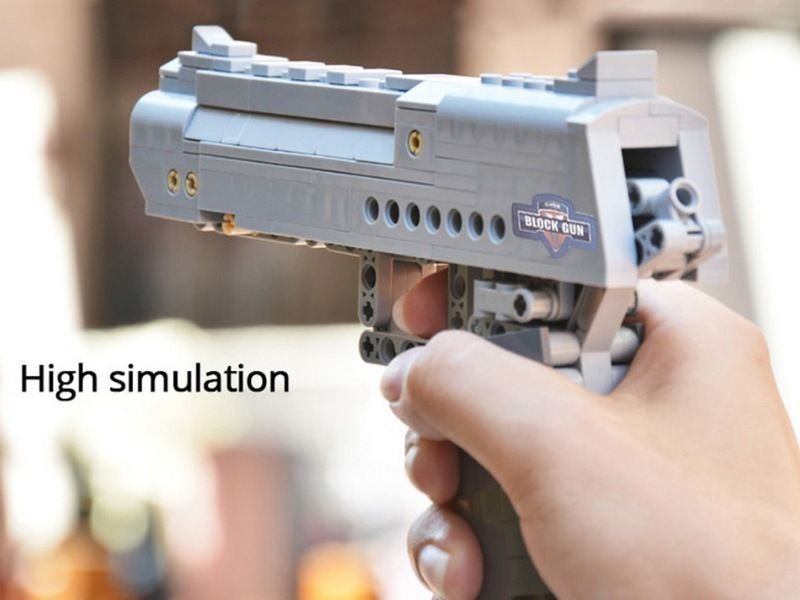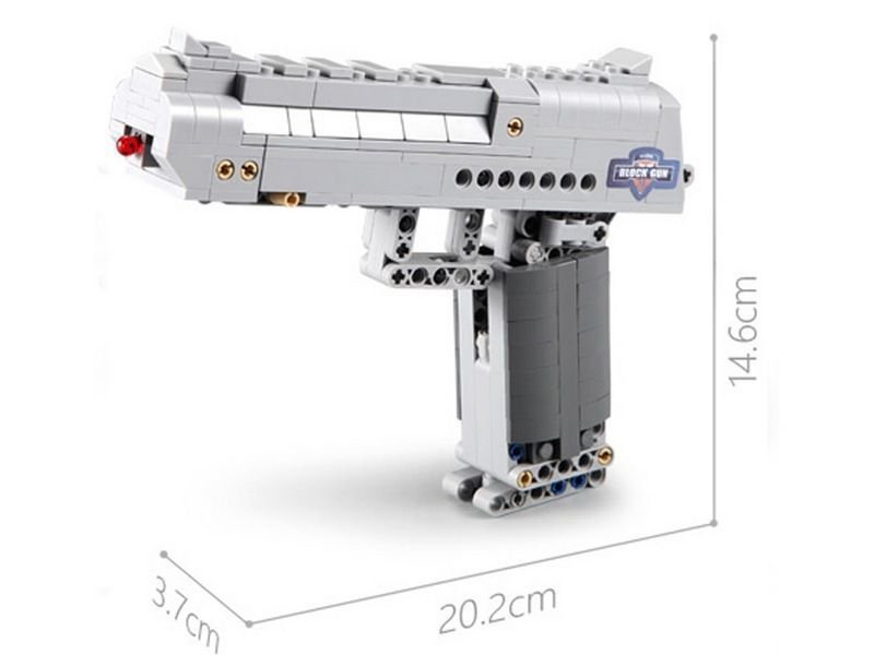 Высококачественный конструктор пистолет Desert Falcon от производителя Cada из 307 деталей стреляет 6 пульками.