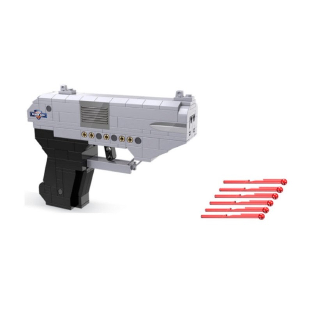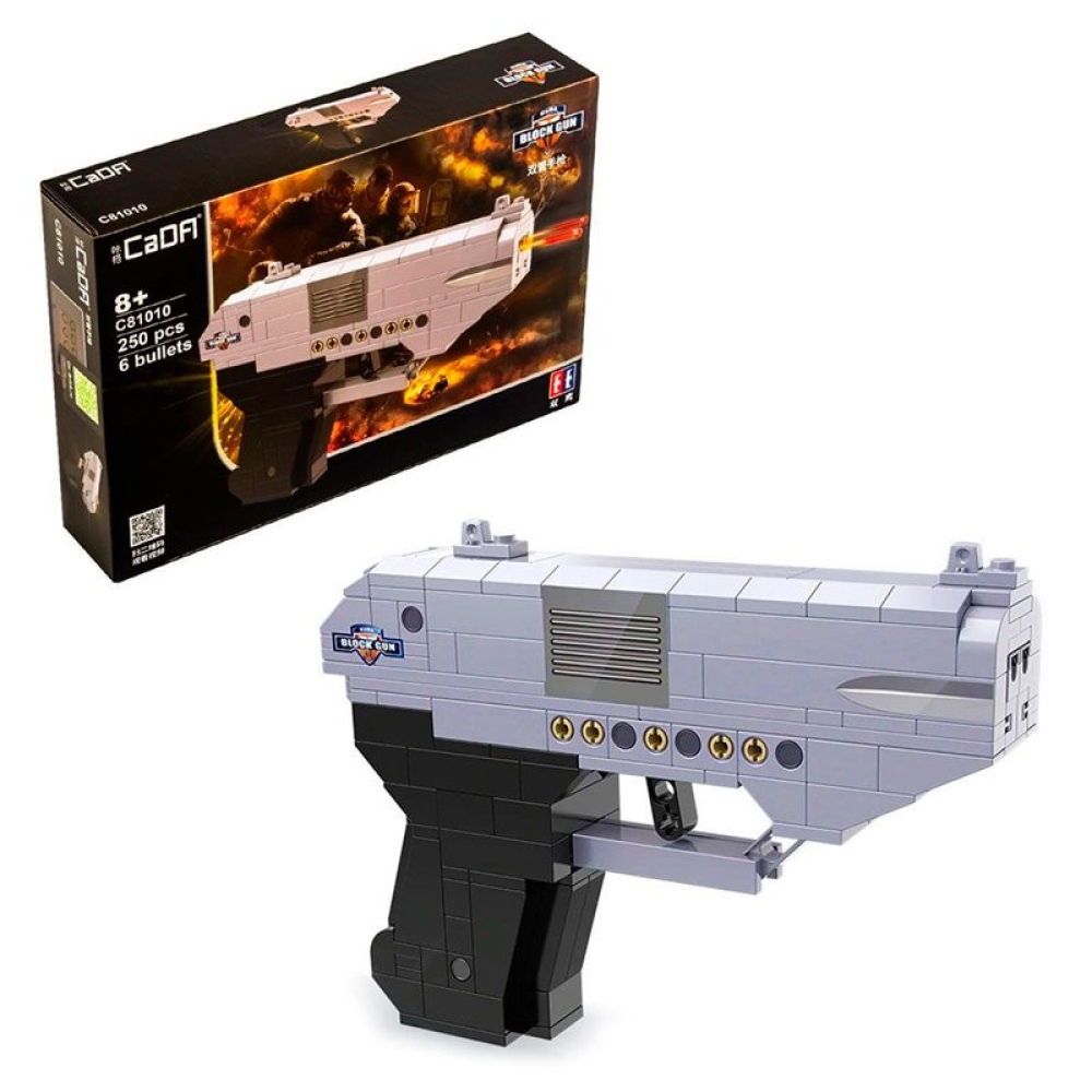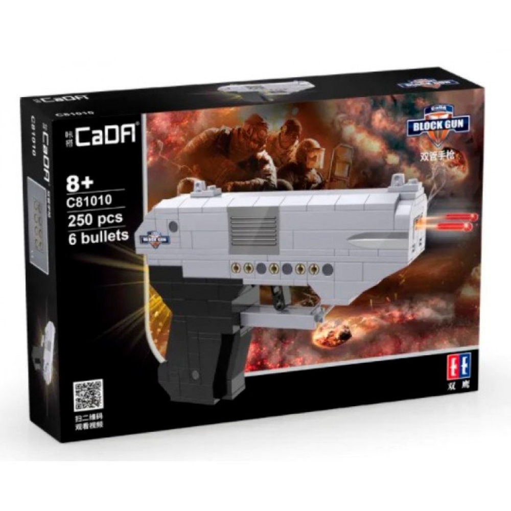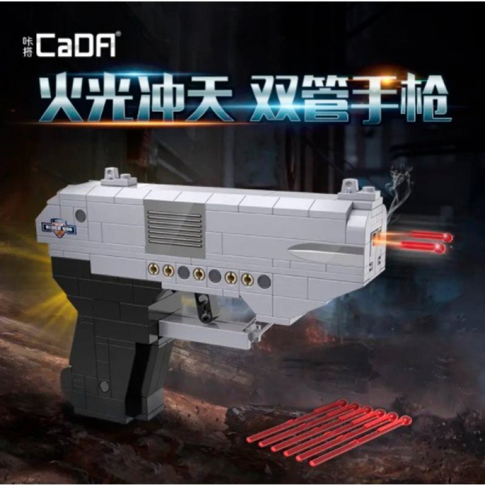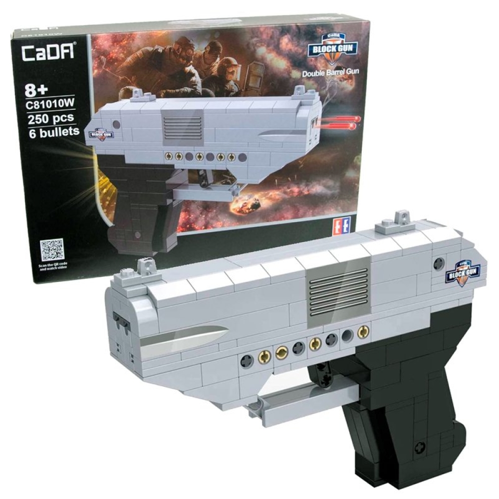 Высококачественный конструктор - двуствольный пистолет от производителя Cada воспитает ребенка как настоящего защитника.