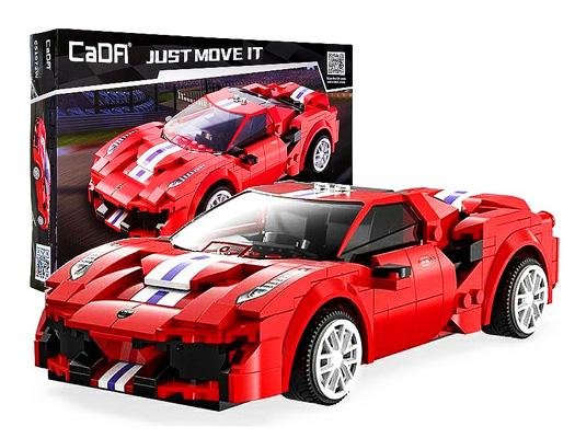 Сборный конструктор от Double Eagle Group (бренд CaDa). Модель гоночного автомобиля Ferrari 488 из 306 деталей, интерактивная, на радиоуправлении, с пультом ДУ в комплекте. Скорость машинки - 3,8 км/ч. Питание осуществляется от батареек. Цвет - красный.