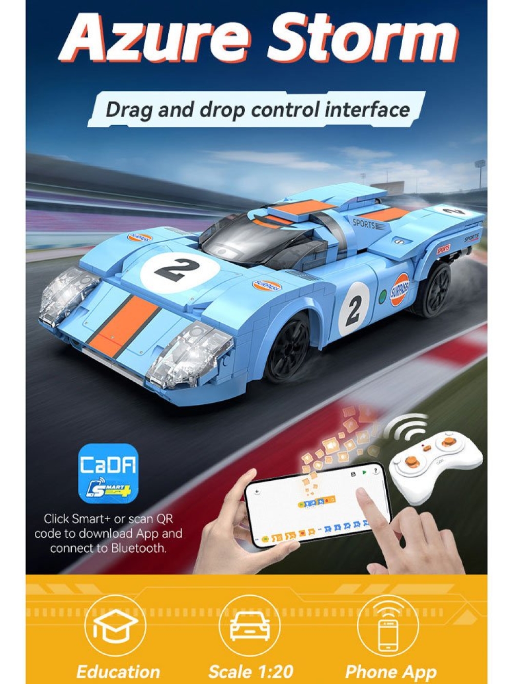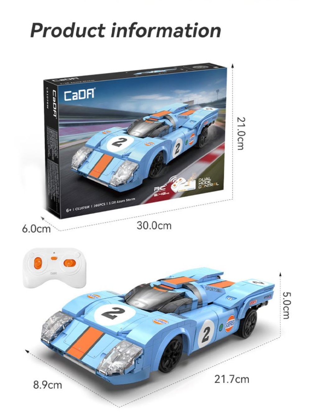 Конструктор Cada Гоночный автомобиль Azure Storm масштаб 1:20, 266 элементов - C51076W