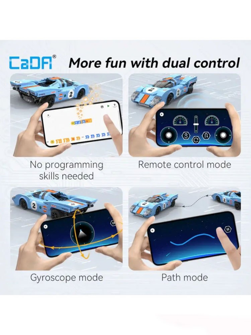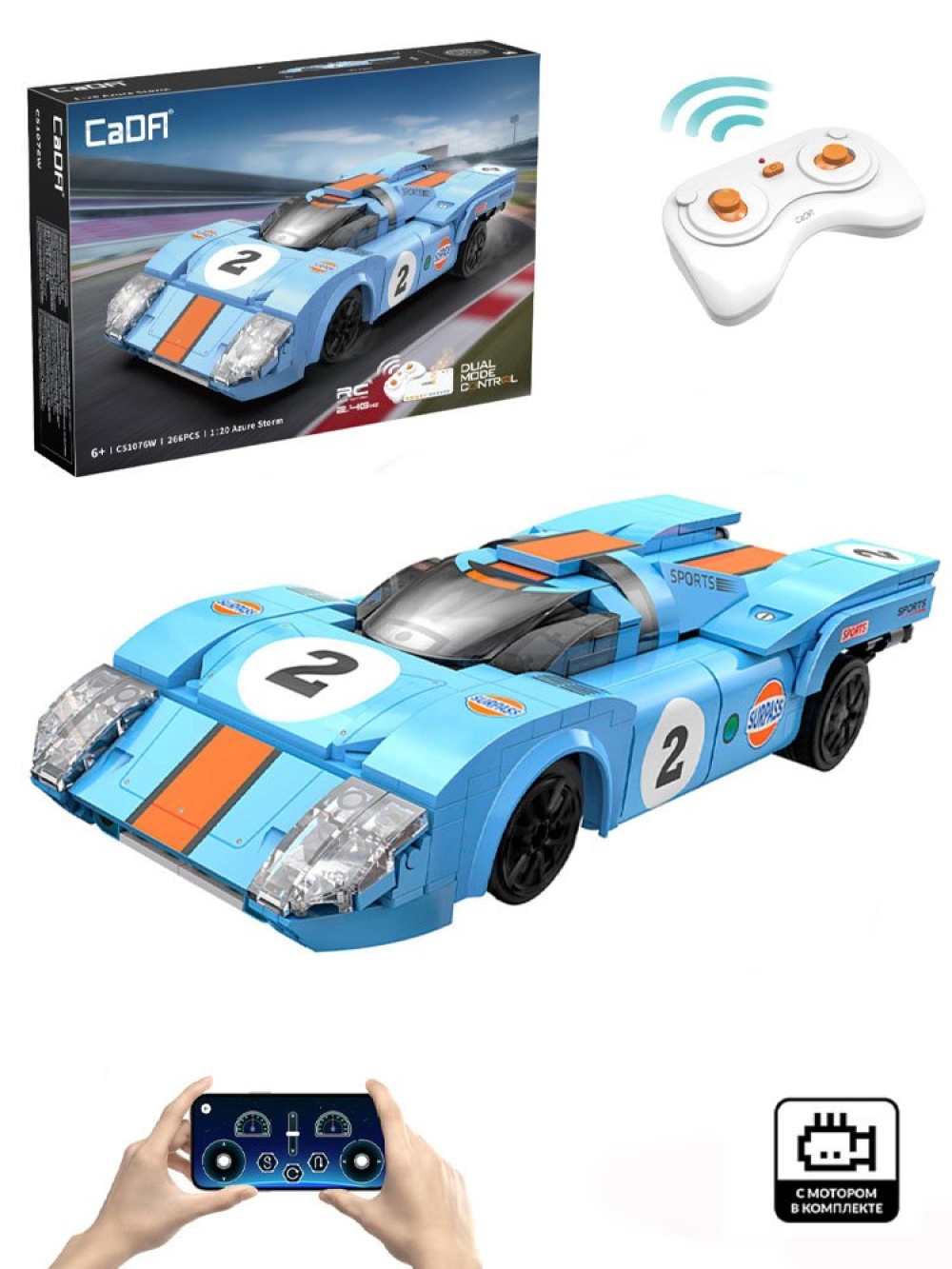 - конструктор управляется по радио (2,4 ГГц) или через Bluetooth- приложение