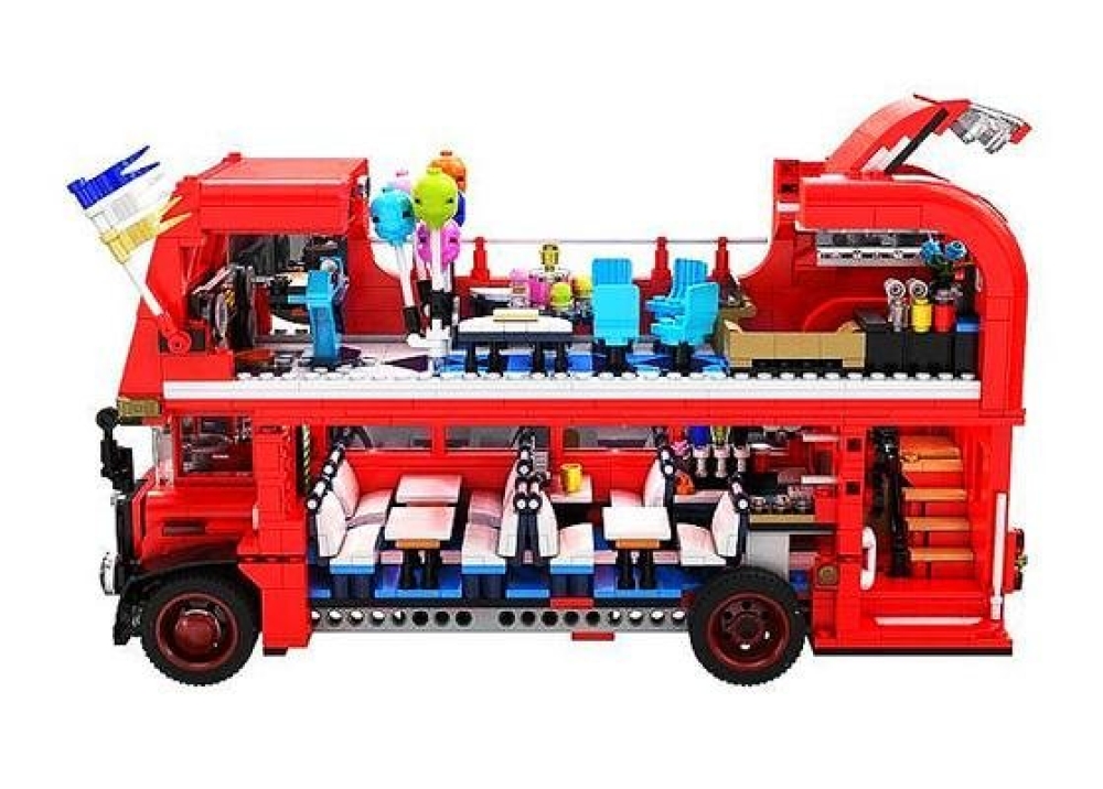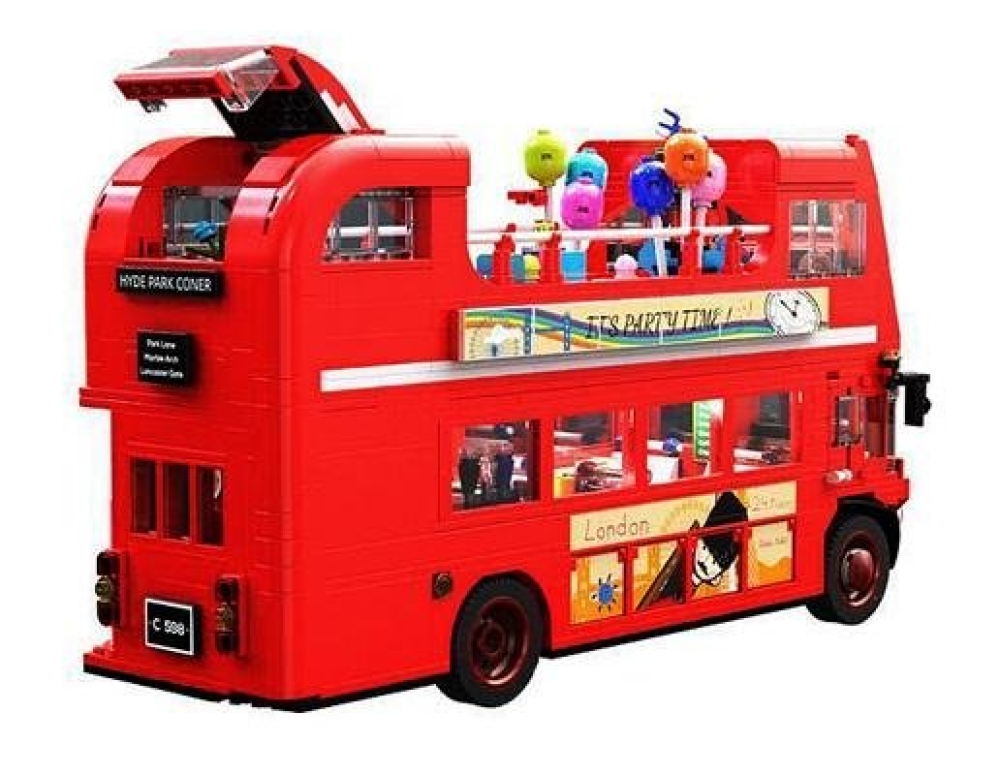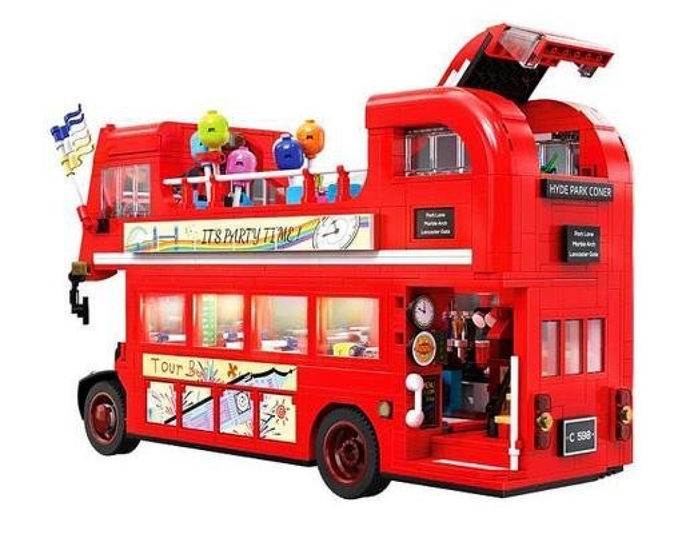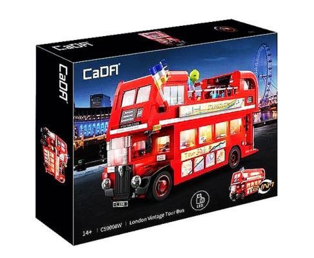 CaDa - это бренд производителя игрушек Double Eagle Group. В наборе C59008W предоставляется 1770 деталей для сборки лондонского винтажного туристического автобуса. У модели отличная степень детализации, очень проработанный внутренний интерьер. Цвет автобуса - красный. Установка двигателя не предусмотрена, но в комплекте идет подсветка для внутреннего интерьера. Структура модели - модульная, можно снимать стенки автобуса для доступа к элементам салона. Дверца на крыше автобуса открывается.