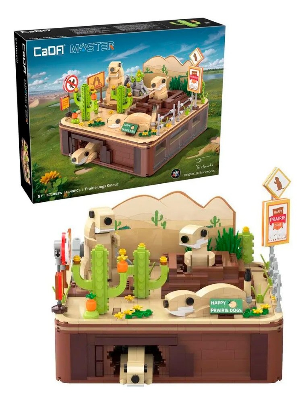 - Конструктор от CADA для сборки диорамы Жизнь сурков. На обширных лугах живет группа умных сурков. Некоторые из сурков наблюдают, некоторые охотятся, некоторые роют ямы, а некоторые играют. Набор «Жизнь сурков» представляет собой замечательное сочетание захватывающей эстетики и механической изобретательности, предоставляя детям увлекательную платформу для творчества. Разработанный для детей от 8 лет, этот набор предлагает богатый набор из сложных деталей, включая реалистичные кактусы, сорняки, дорожные знаки и следы нор сурка.