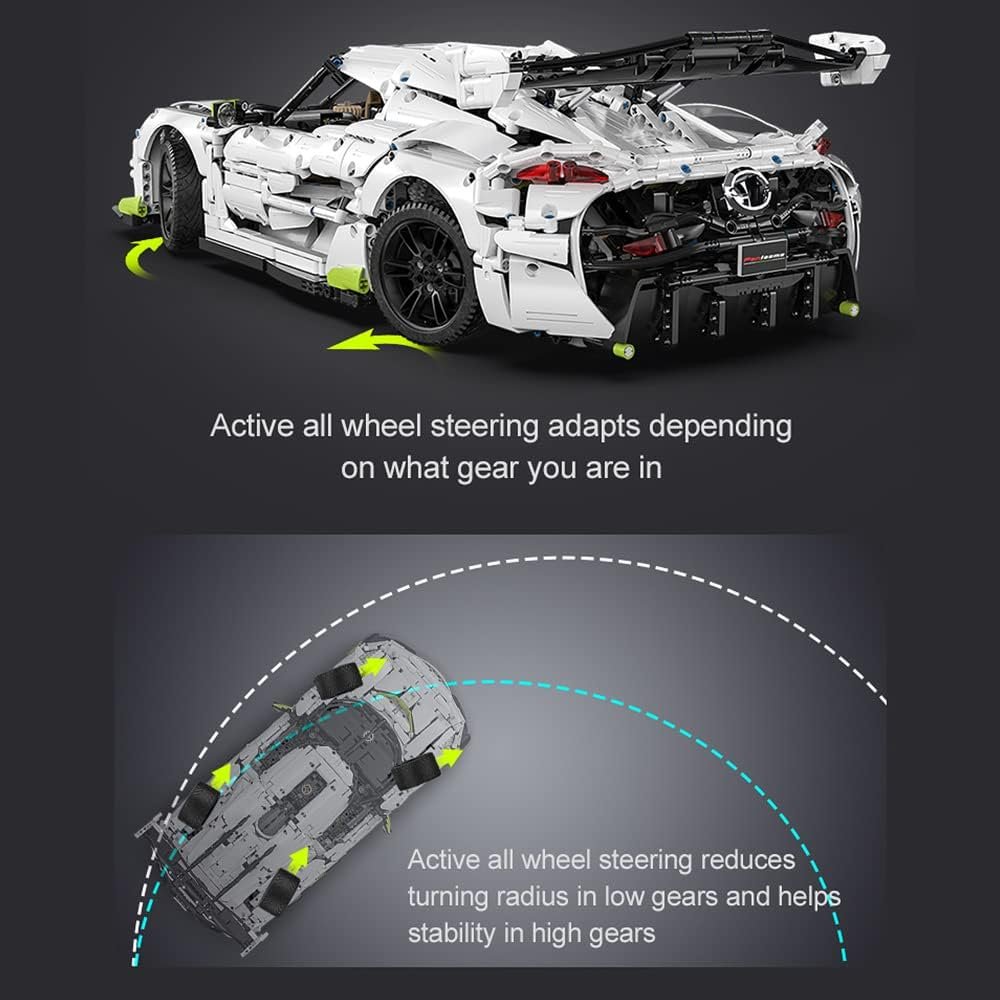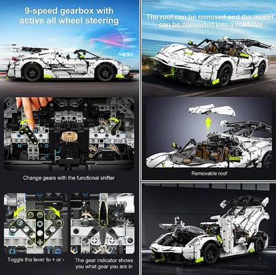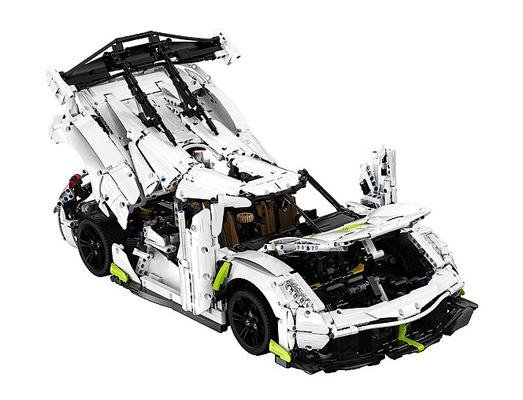 Сборный конструктор от Double Eagle Group (бренд CaDa). Масштаб 1:8. Модель автомобиля из 4346 деталей. Независимая подвеска, под капотом модели - восьмицилиндровый двигатель. Цвет - белый и светло-зеленый.