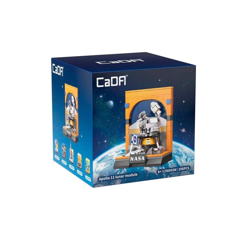 - Набор CaDA NASA 'Apollo 11 Lunar Module' посвящена исторической высадке NASA на Луну с детальным лунным модулем. Этот набор с удивительной точностью передает суть лунного посадочного космического корабля. Компоненты лунного модуля можно разобрать и использовать для игры.