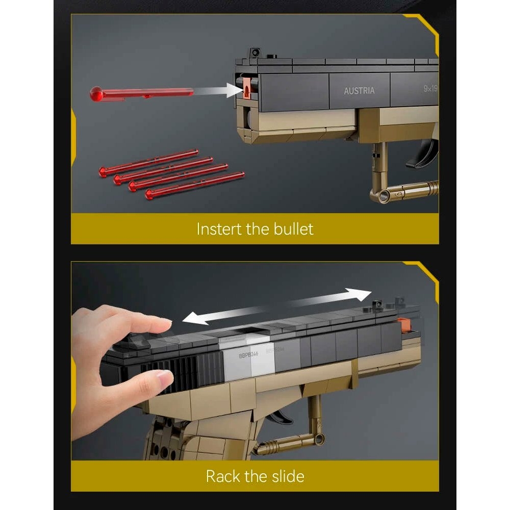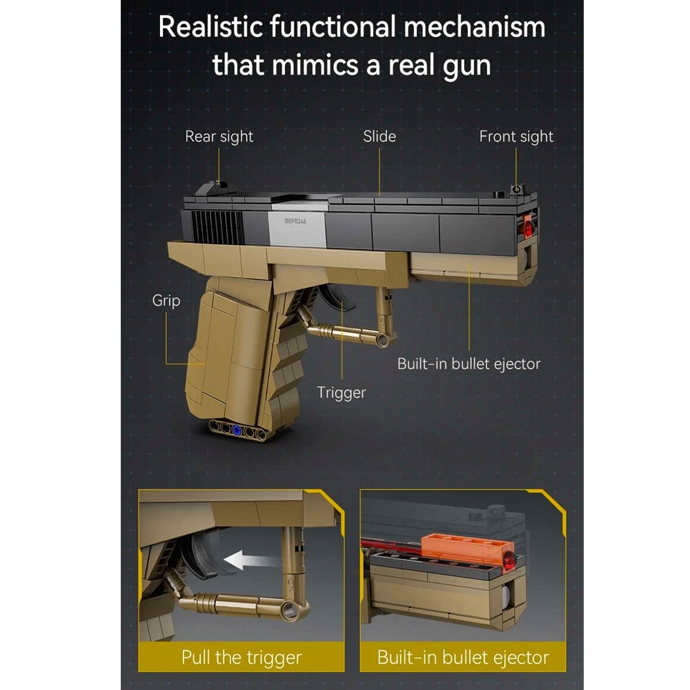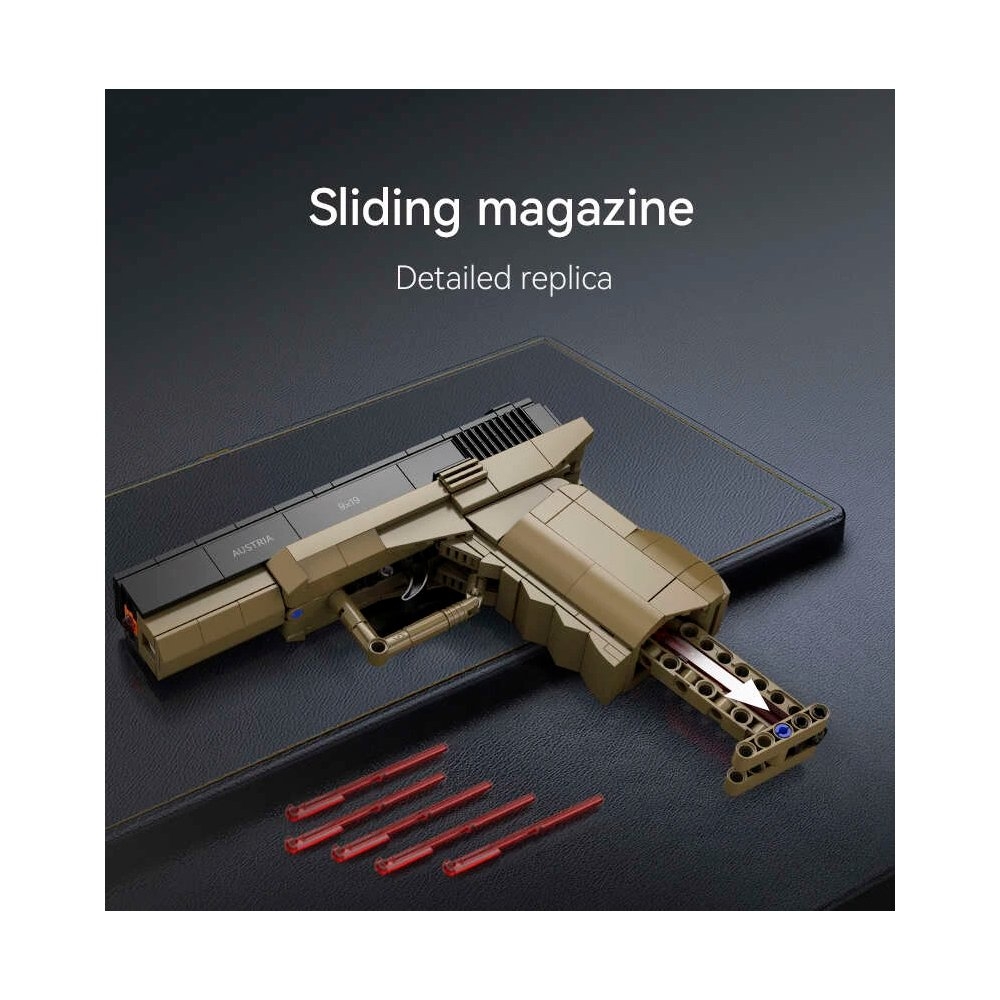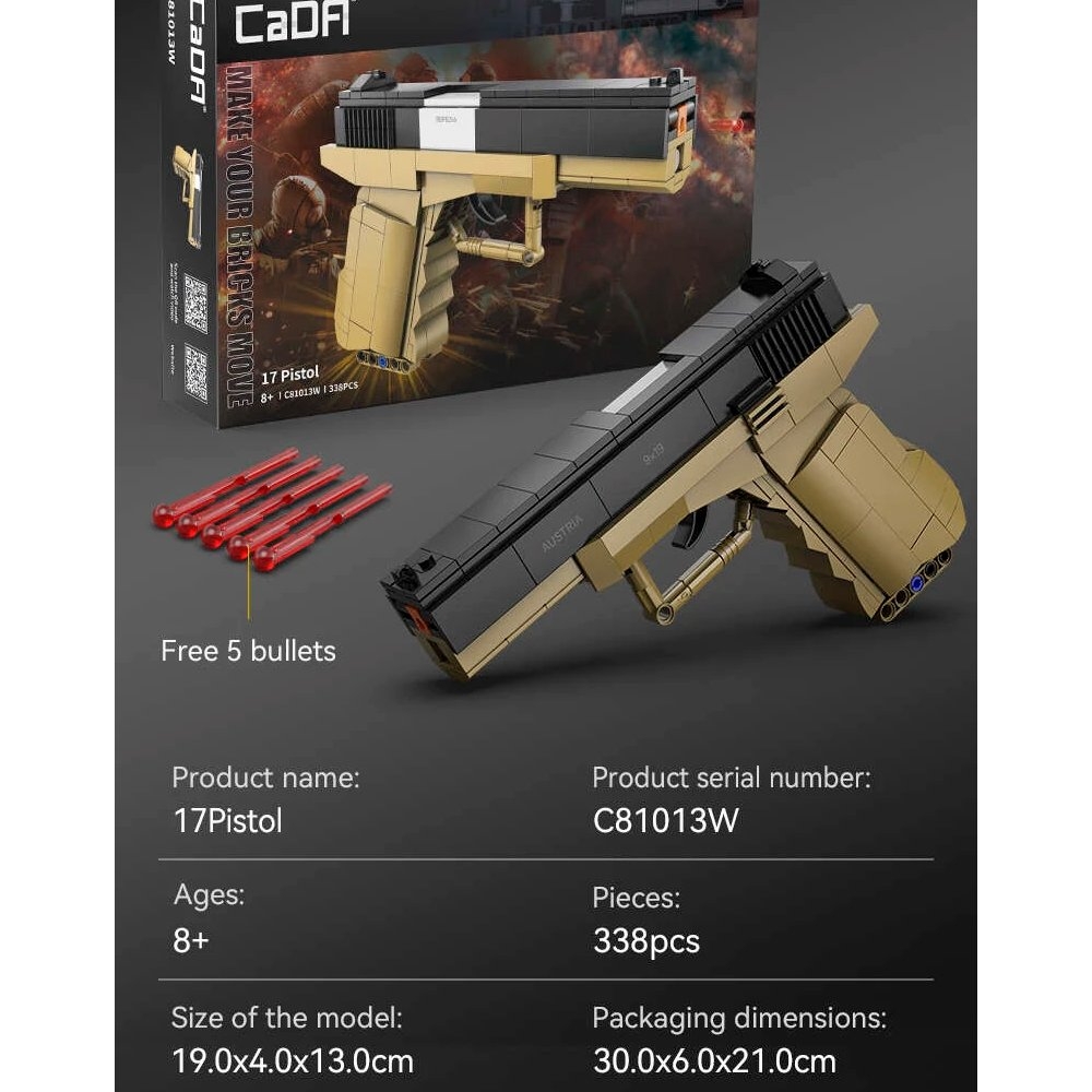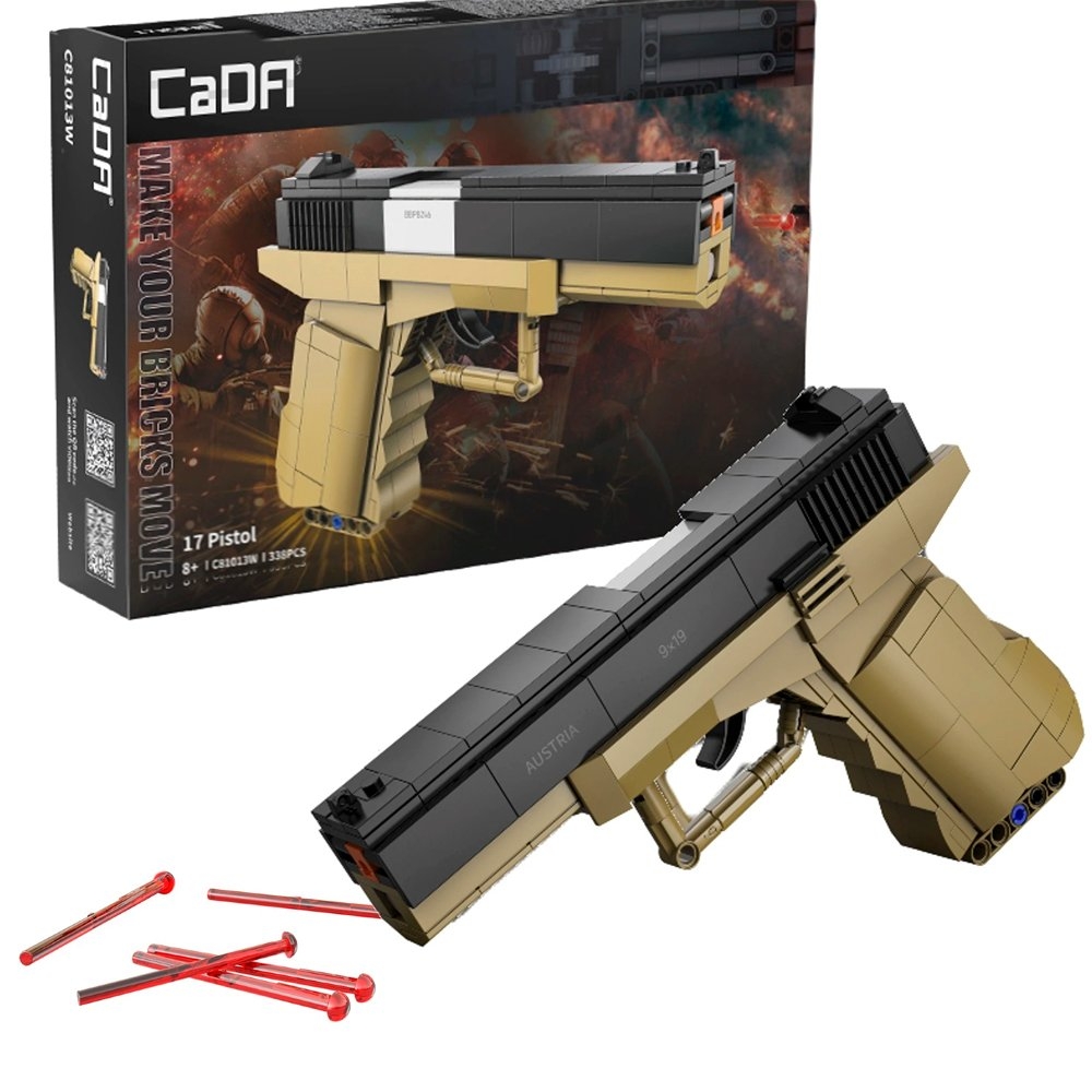 - Конструктор от CADA для сборки модели пистолет 17 Pistol воспитает ребенка как настоящего защитника. Собранный из 338 деталей пистолет 17 впечатлит не только любого мальчишку, но и взрослого. Пистолет разнообразит игру мальчишки не только в период сборки, но и во время игры с почти настоящим оружием. Пистолет стреляет пульками, не наносящими вред здоровью. Процесс зарядки пулек предельно прост и соответствует настоящему оружию, а стрельба впечатляет.