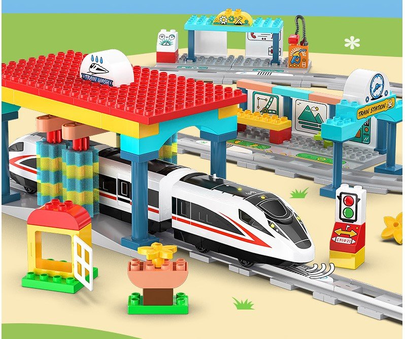 Конструктор от CADA для постройки скоростной железной дороги из 112 деталей. В наборе железнодорожная станция, моечная станция и ремонтная мастерская. Сенсоры звуковых и световых сигналов.