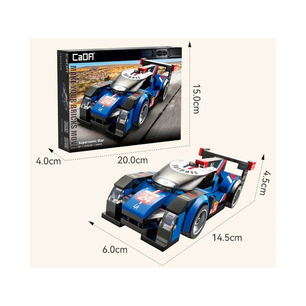 - Конструктор от CADA для сборки спортивной машинки Supersonic Star из 164 деталей в масштабе 1/24. Автомобиль обладает высокой степенью детализации и выглядит как настоящий спортивный автомобиль в масштабе 1/24. Колеса полностью функциональны, поэтому его можно использовать не только для демонстрации.