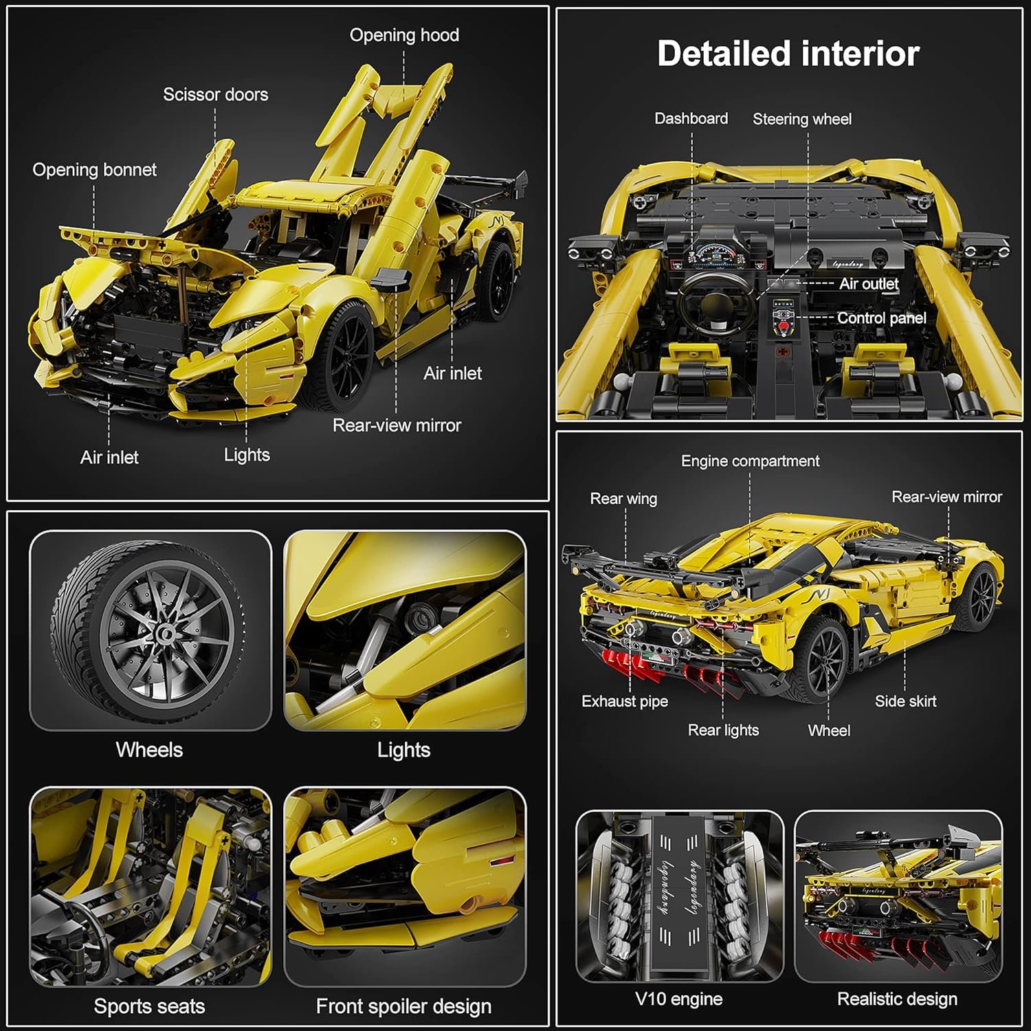 Конструктор от CADA представляет собой набор для постройки спортивного автомобиля Supercar из 1805 деталей. Имеет стильный дизайн и детализованный внутренний интерьер с панелью управления, кондиционерами и приборной панелью. Капот, багажник и двери открываются. Под капотом - десятицилиндровый двигатель, имитирующий работу в движении. Колеса поворачиваются поворотом руля и имеют независимую подвеску. Модель может быть оборудована набором электроники для дистанционного управления (приобретается отдельно).