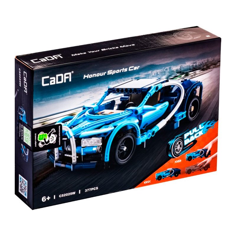 Конструктор от CADA для постройки спортивного автомобиля Honour из 377 деталей. Оснащён инерционным механизмом.