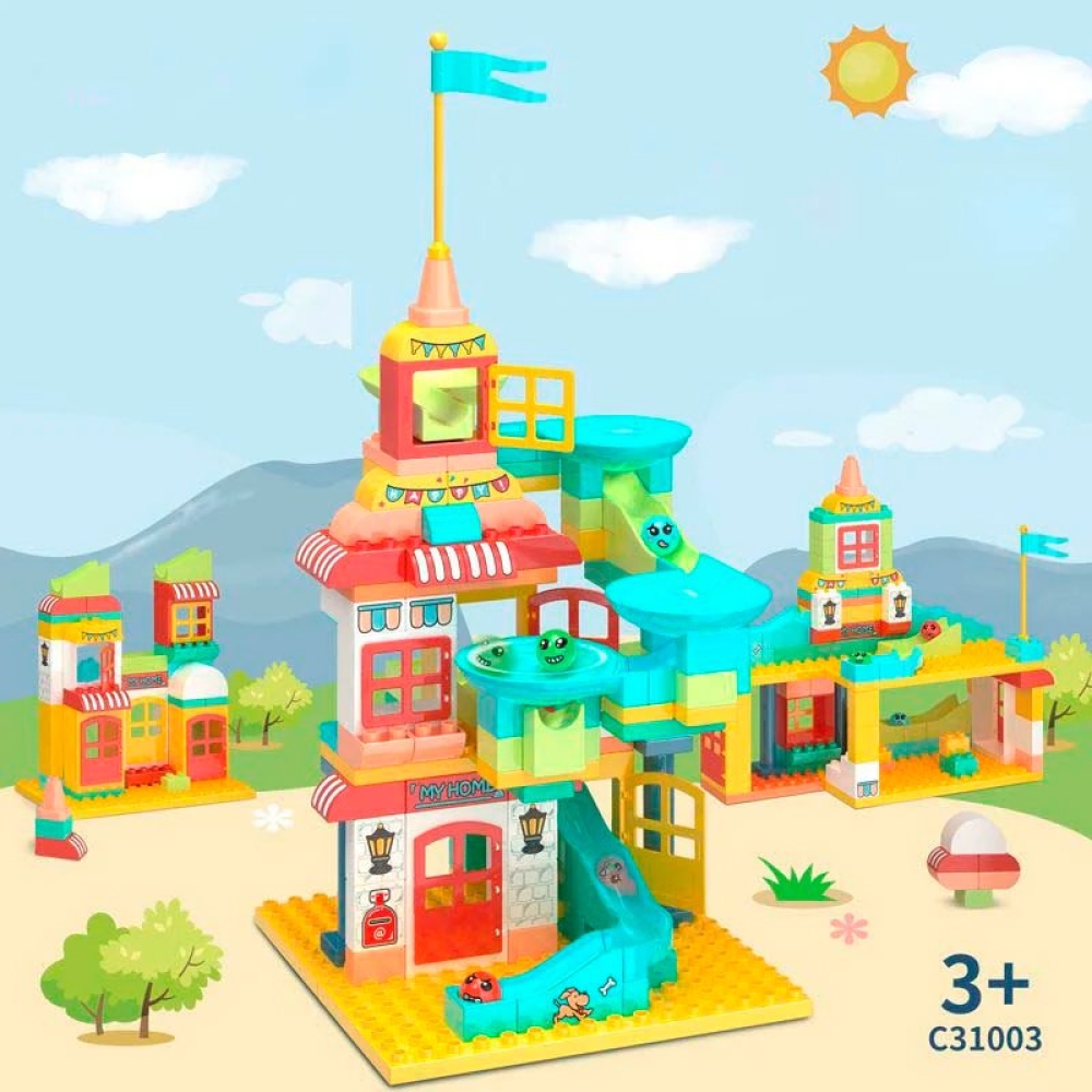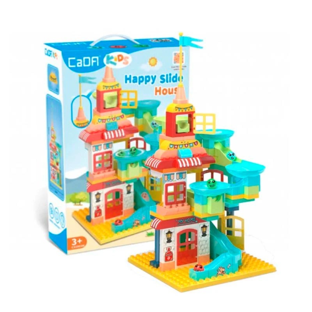 Конструктор CADA веселый дом-горка, интерактивный, лабиринт с шариками и воронками, 121 элемент - C31003W