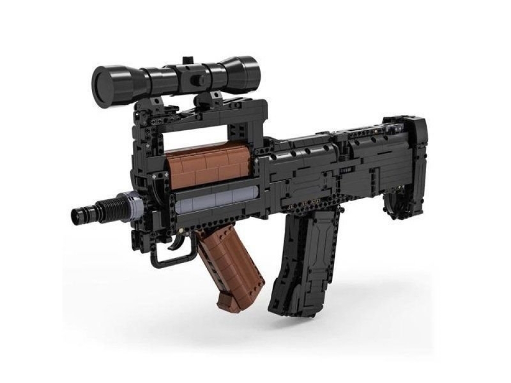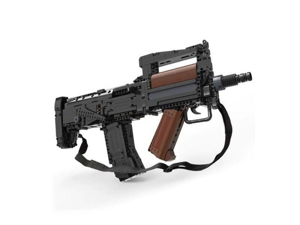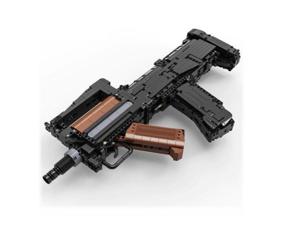 Конструктор от CADA для сборки модели штурмовой винтовки "Гроза" из 1504 деталей. Можно примкнуть и отомкнуть магазин. Для стрельбы необходимо снять винтовку с предохранителя и передёрнуть затвор.