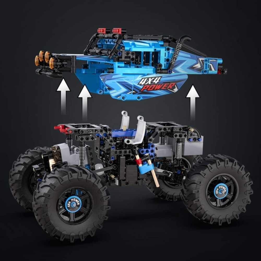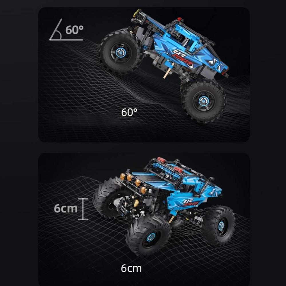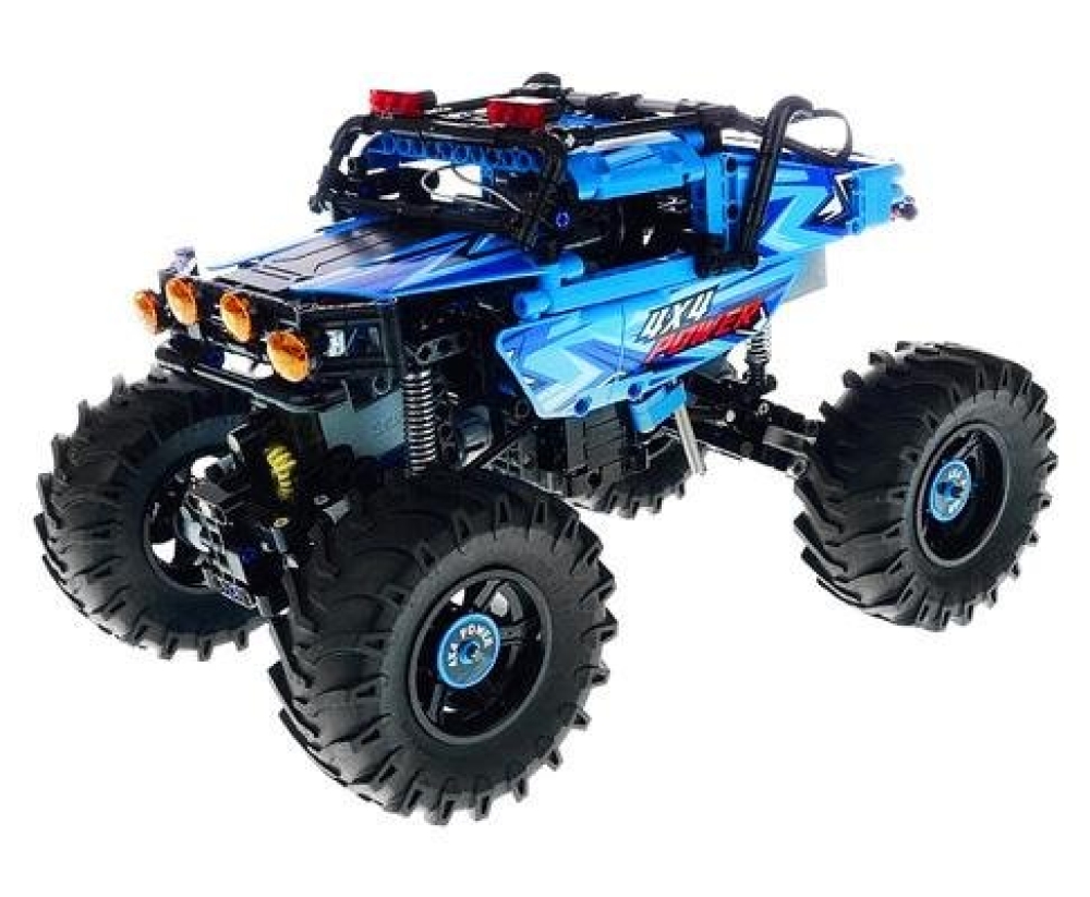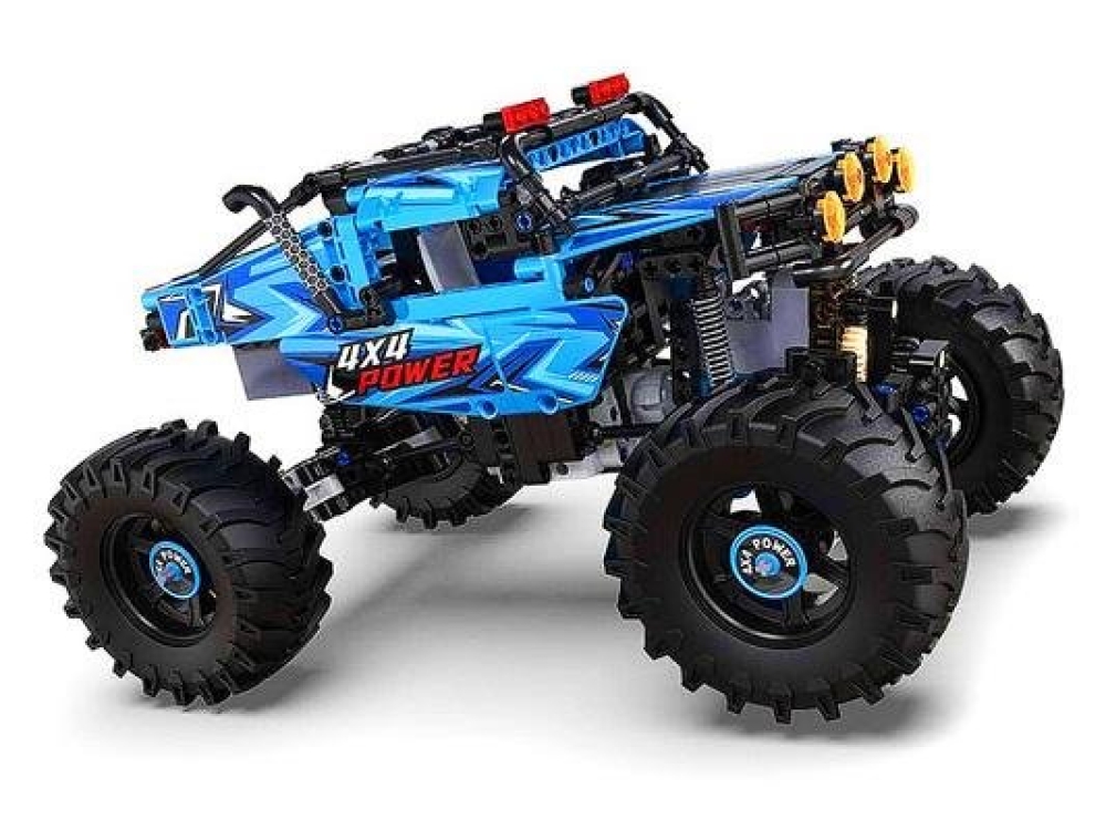 CaDa - это бренд производителя игрушек Double Eagle Group. В наборе C61008W предоставляется 699 деталей для сборки чёрно-синего внедорожника Монстр Трак. Помимо деталей корпуса, платы управления и колес, в комплекте идут пульт управления, приводной мотор, сервомотор, аккумуляторный бокс и светодиоды для подсветки двух фар. Пульт ДУ действует в радиусе 25 метров.