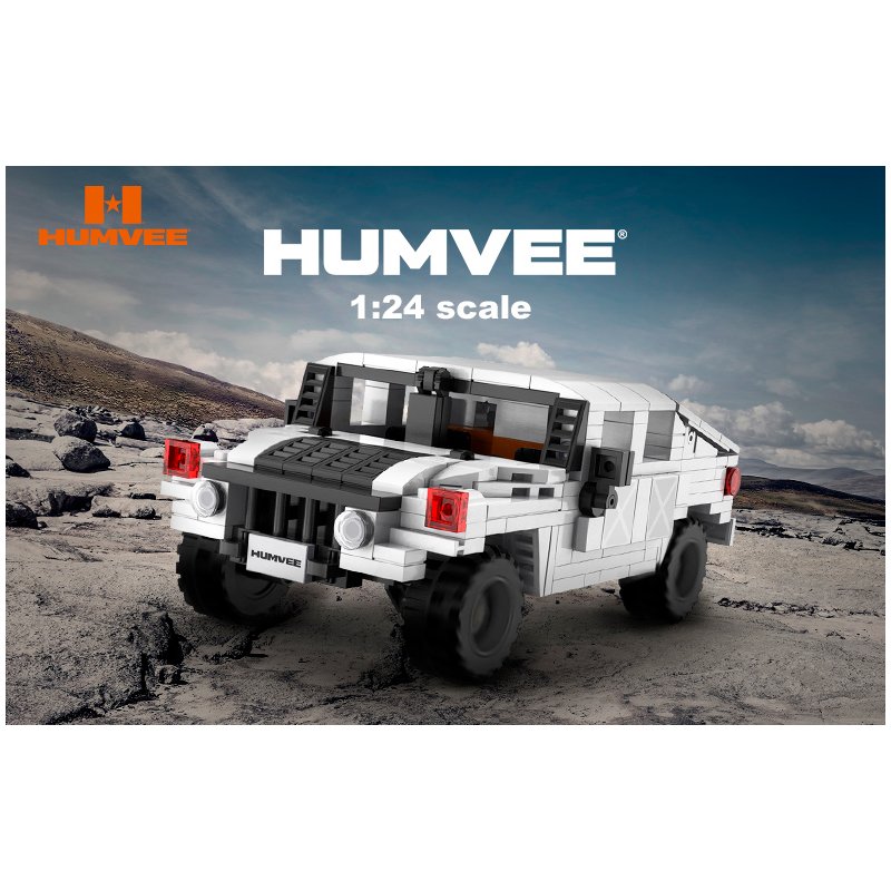 Конструктор от CADA для постройки военного бронированного автомобиля HumVee из 328 деталей в масштабе 1/24. Открывается багажник.