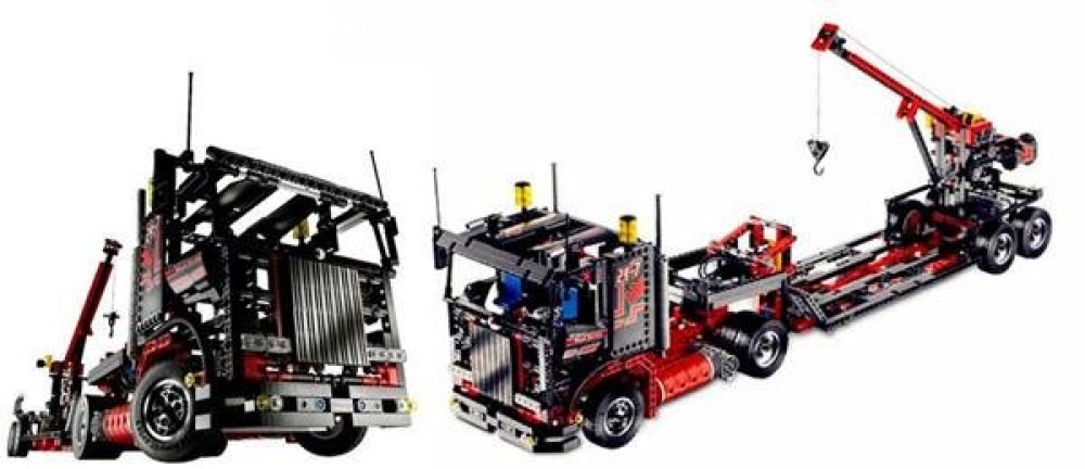Американский большой грузовик буксировщик имеет в своем оснащении выдвижную стрелу с крюком и лебедкой. Выдвижные опоры помогут зафиксировать тягач. Механизм подъемника имеет ручное управление для подцепления техники и ее вытягивания. Собирая конструктор ребенок поймет как устроен настоящий грузовик. Под капотом расположен двигатель V6 с двигающимися деталями. Резиновые колеса крутятся, а под днищем автомобиля вы найдете вращающийся кардан и шестерни, а также дифференциал на заднем мосту. Особенности и преимущества: