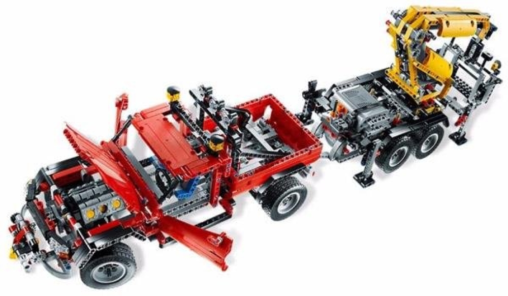 Как и многие модели Technic вы можете собрать конструктор двумя способами. В первом случае у вас получится грузовой тягач со стрелой манипулятора для подъема грузов, а во втором вы соберете внедорожник пика с прицепом, на котором располагается кран. Капот и двери открываются, можно заглянуть в салон и увидеть приборную панель. Под капотом вы найдете двигатель, кстати, многие детальки двигаются, например, шестеренки, поршни, кран, колеса и некоторые другие. В наборе идет электроника для дистанционного управления с пульта. Можно ездить и поворачивать стрелу крана.