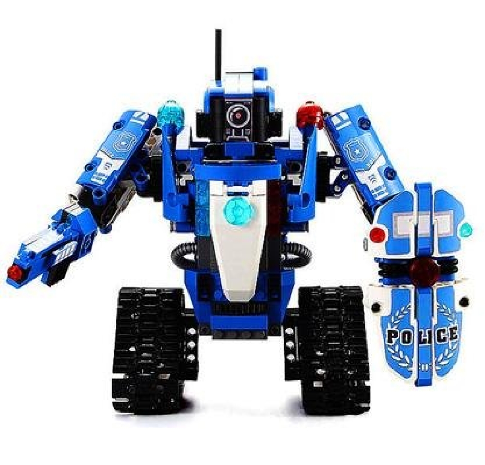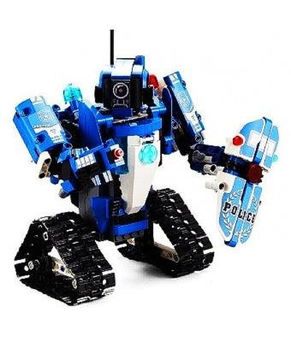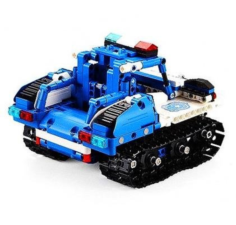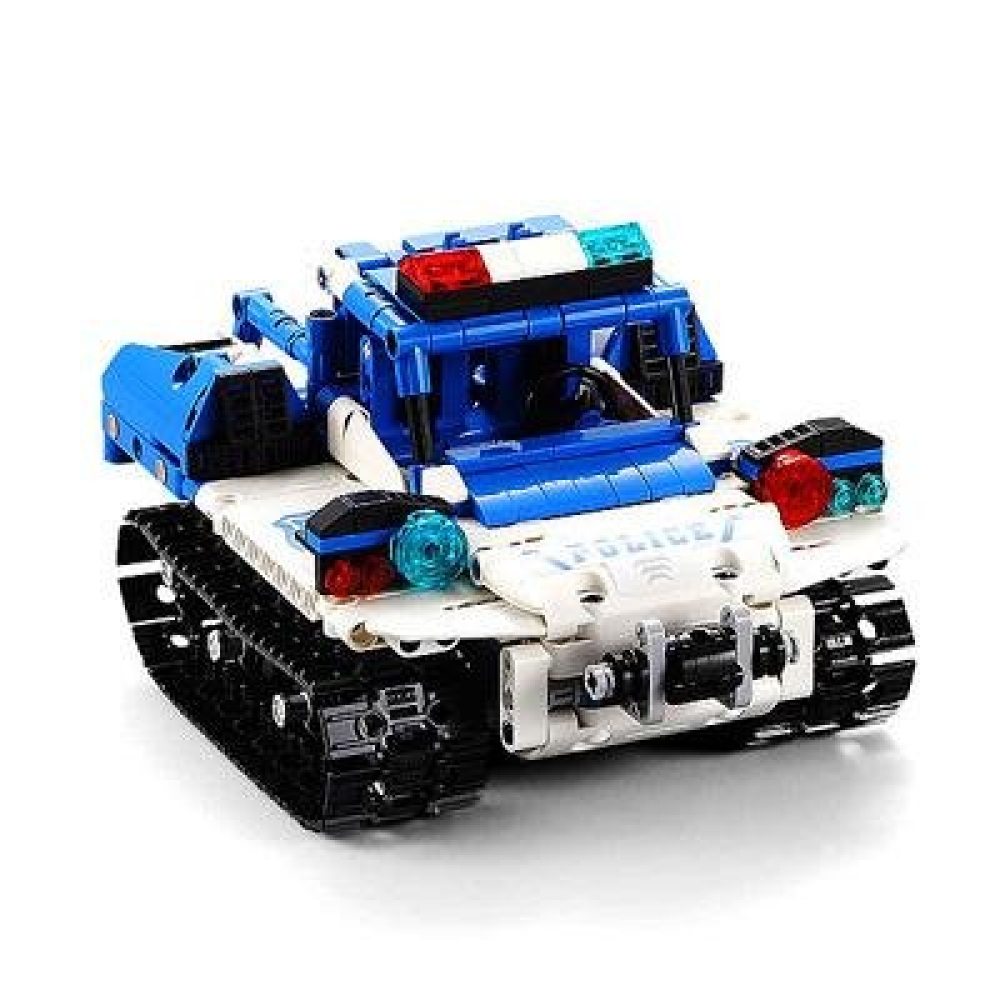 CaDa - это бренд производителя игрушек Double Eagle Group. В наборе C51049W предоставляется 556 деталей для сборки бело-синего робота-полицейского, которого можно пересобрать в радиоуправляемую полицейскую машинку. В комплекте идут колеса, 2 электродвигателя, приемник, пульт управления 2,4 ГГц, аккумулятор Li-Po 3.7 В 300 мАч и зарядное устройство USB - так что в качестве машинки этот конструктор является полноценной радиоуправляемой моделью. Пульт ДУ действует в радиусе 30 метров.