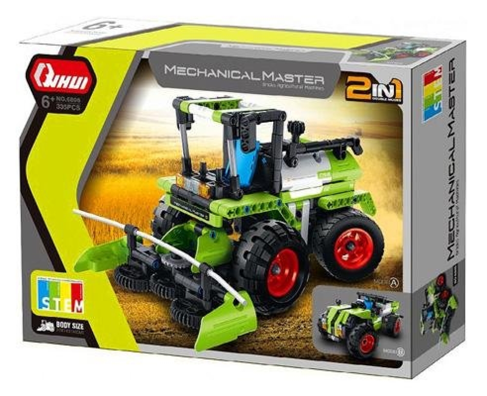 В наборе QiHui 2в1 трактор и комбайн - QH6806 - предоставляется 335 деталей для сборки игрушки-трансформера 2-в-1. Серия QiHui повторяет знаменитую серию Техникс. В этом наборе предлагается собрать два варианта спецтехники. В первом варианте сборки игрушка представляет собой сельскохозяйственный комбайн, во втором - трактор. Детали игрушки сделаны из прочного пластика. Для сборки не потребуется дополнительных инструментов. Конструктор развивает инженерные навыки и безопасен для детей от 6 лет.