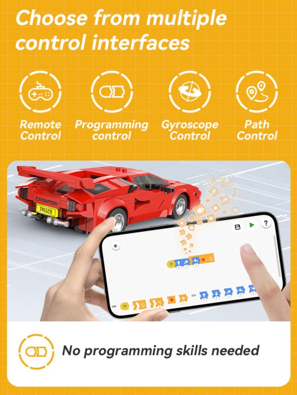 Ярко-красный корпус с агрессивными линиями и аэродинамическим антикрылом создают образ настоящего суперкара. Реалистично проработанный кузов, фаркоп, спортивные диски и даже выхлопная система говорят о высокой детализации. Двойной режим управления —с помощью пульта или мобильного приложения — позволяет испытать незабываемый драйв, как от настоящих гонок. Модель, собираемая из 328 деталей, станет отличным подарком для коллекционеров и любителей суперкаров от 6 лет.