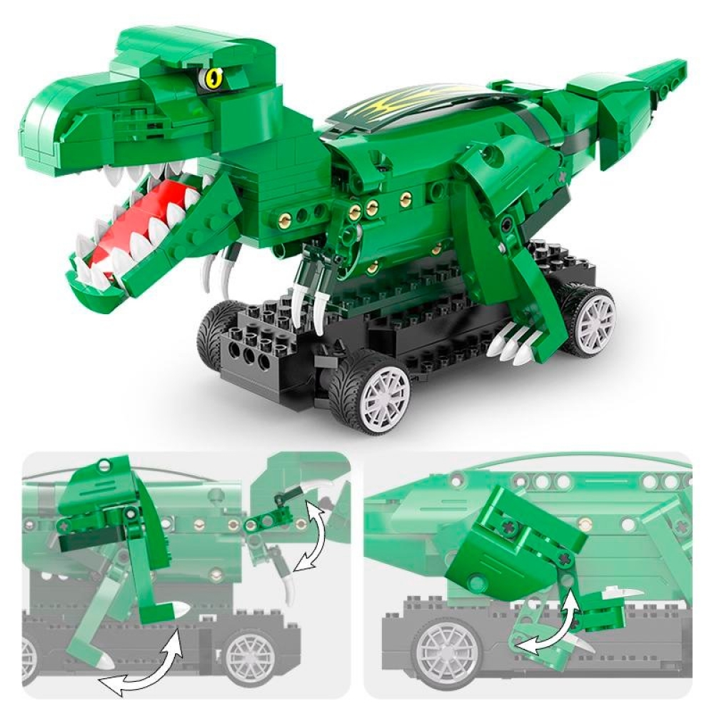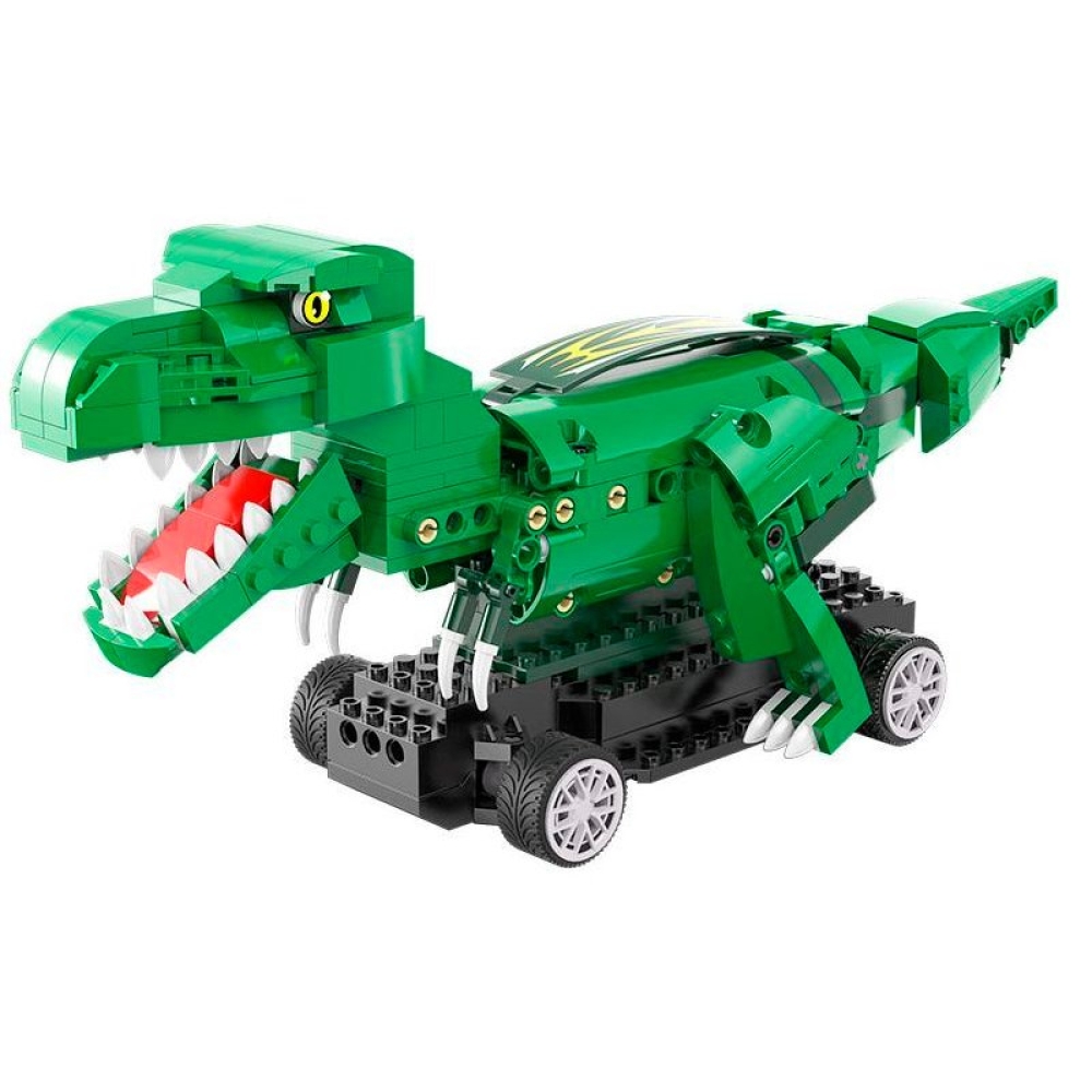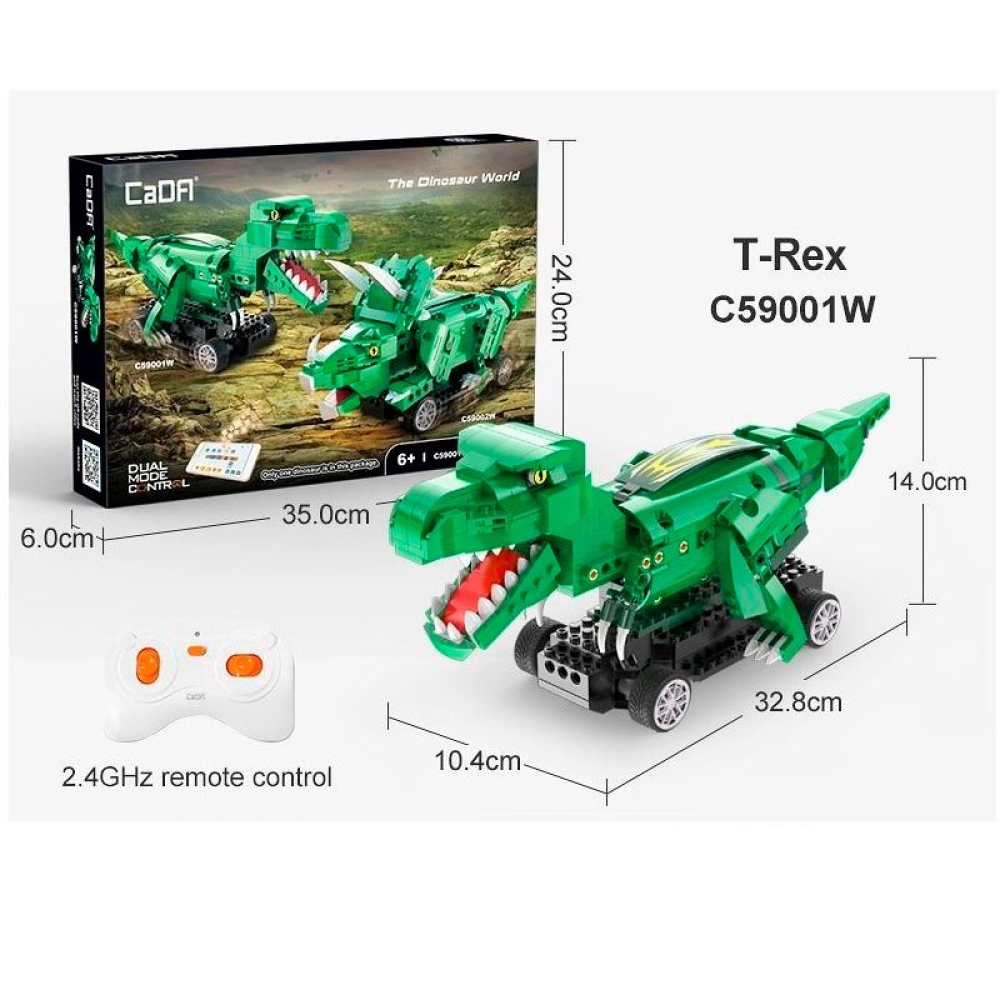 Радиоуправляемый конструктор "Мир динозавров" от CADA представляет собой набор для сборки Тираннозавра из 343 деталей. Лапы динозавра двигаются при движении, а внушительный внешний вид никого не оставит равнодушным. Управлять моделью можно как при помощи пульта управления, так и приложения на телефоне, при этом можно выбрать один из нескольких вариантов управления.