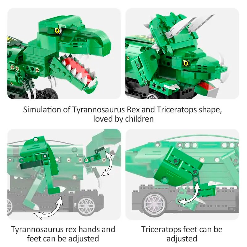 Радиоуправляемый конструктор "Мир динозавров" от CADA для сборки Трицератопса из 317 деталей. Лапы динозавра двигаются при движении. Управлять моделью можно при помощи пульта управления или приложения на телефоне, можно выбрать один из нескольких вариантов управления.