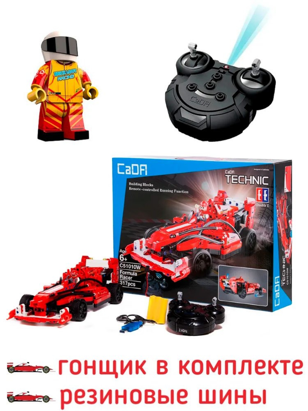 Радиоуправляемый конструктор CaDA Technic гоночный болид (317 деталей) C51010W