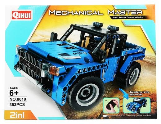 Сборный конструктор от QiHui. Игрушка 2-в-1: радиоуправляемый синий пикап. Количество деталей - 353. Для сборки не нужны дополнительные инструменты, а в комплекте идут пульт управления и антенна. Модель подходит для детей старше 6 лет.